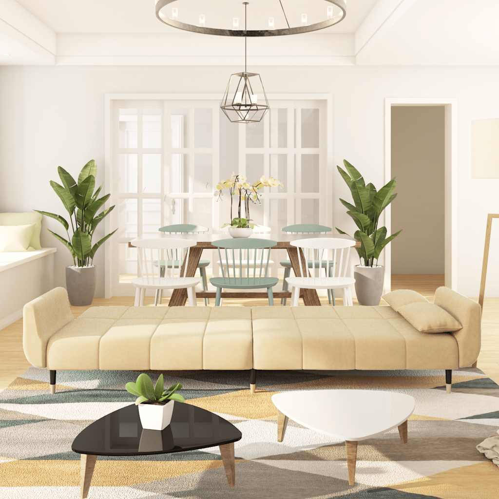 Canapea extensibilă cu 2 locuri, 2 perne, crem, catifea GartenMobel Dekor