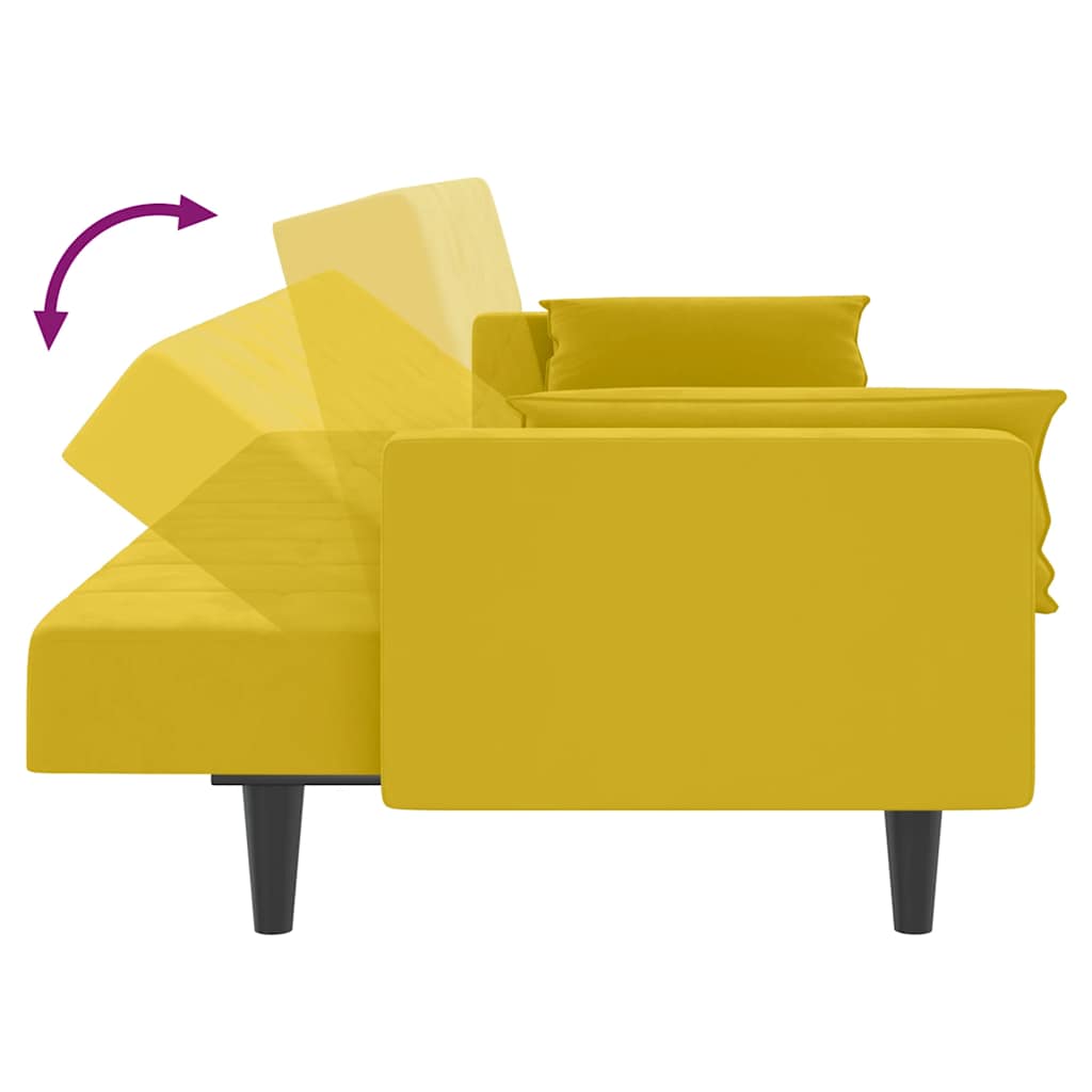 Canapea extensibilă cu 2 locuri, 2 perne, galben, catifea GartenMobel Dekor