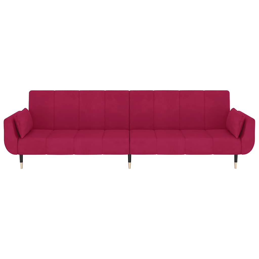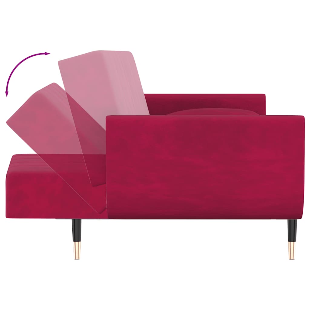 Canapea extensibilă cu 2 locuri, 2 perne, roșu vin, catifea GartenMobel Dekor