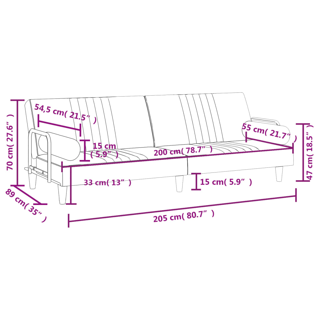 - Spătar reglabil: Puteți împinge cele două spătare separate ale canapelei de zi, parțial sau complet în jos, pentru a crea un loc ideal pentru un pui de somn sau un pat twin dublu.