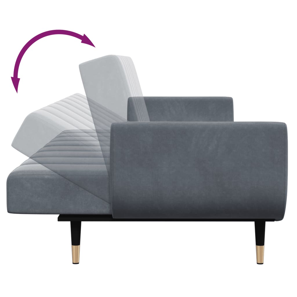 Canapea extensibilă cu taburet, 2 locuri, gri închis, catifea GartenMobel Dekor