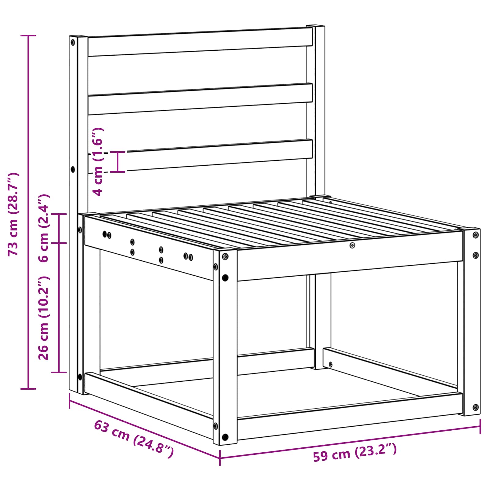 - Dimensiuni generale: 59 x 63 x 73 cm (L x l x î)