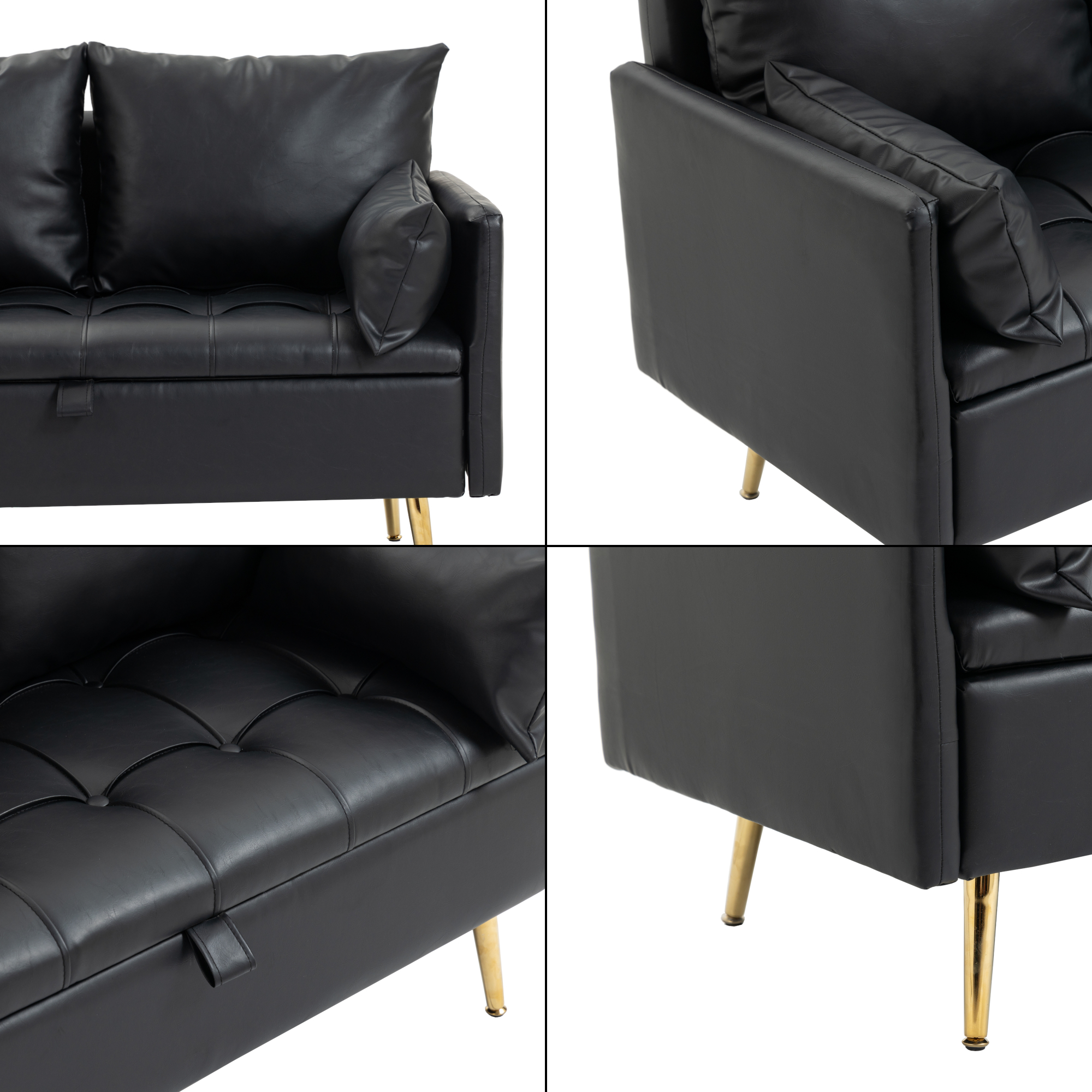 Sub suprafata destinata sederii se ascunde un compartiment practic, ideal, pentru depozitarea paturilor si a altor obiecte. Cele patru picioare metalice ale canapelei asigura stabilitatea, iar culoarea aurie ii imbogateste aspectul modern si atemporal.