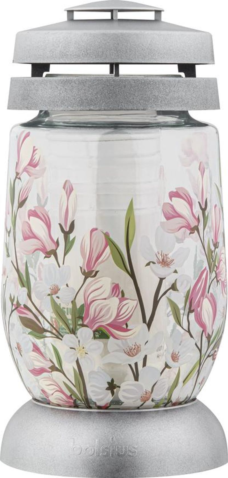 Candela funerara Bolsius Magnolia imbina un design elegant cu functionalitatea necesara pentru utilizarea la mormant. Realizata din sticla transparenta de calitate, aceasta permite observarea frumoasa a flacarii, iar decorul floral in nuante delicate ofera un aspect rafinat si modern.