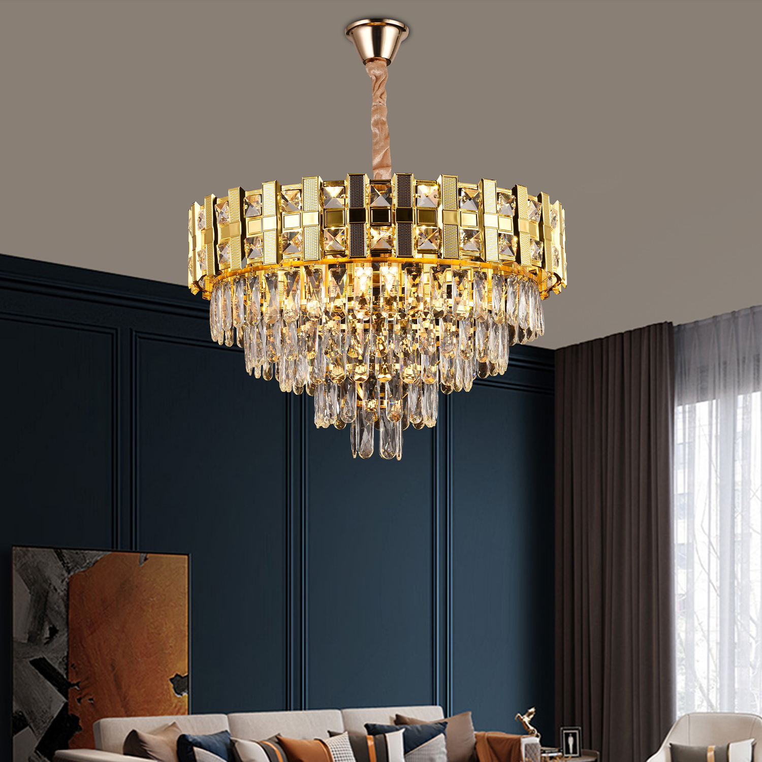 Candelabru Cristal BRAN Mango 8xE14, Diametru 60cm, Auriu Lucios, Inaltime Reglabila ModernLight Concept