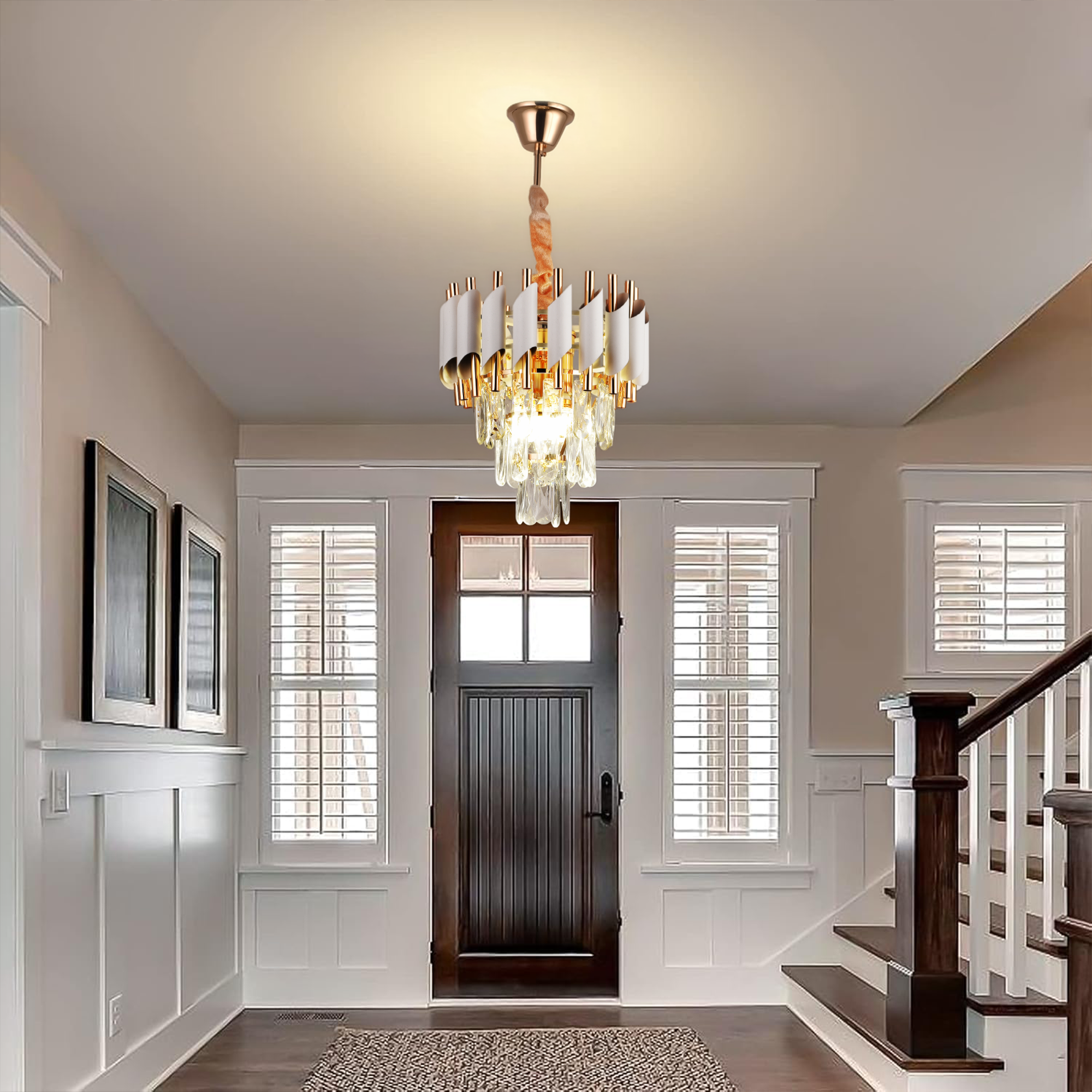 Candelabru din cristal VERSAILLES Petito, 3x E14, Ø30 cm, auriu lucios si alb, inaltime reglabila, metal si cristal Candelabrul din cristal VERSAILLES Petito este o piesa eleganta de iluminat, conceputa pentru interioare rafinate in care detaliile fac diferenta. Combinatia dintre finisajul auriu lucios si elementele albe, alaturi de cristalele atent dispuse, creeaza un efect vizual luminos si sofisticat, potrivit pentru spatii intime si bine definite. Cu un diametru de 30 cm, acest candelabru este ideal pentru holuri, dormitoare, colturi de relaxare sau zone de accent, unde se doreste o lumina ambientala calda si un decor elegant. Designul clasic reinterpretat ofera un echilibru intre rafinament si discretie. Sistemul de suspendare cu inaltime reglabila permite adaptarea in functie de tipul de tavan si proportiile incaperii, iar materialele de calitate asigura durabilitate si stabilitate in timp. Cristalele decorative creeaza reflexii placute ale luminii, transformand orice incapere intr-un spatiu primitor si stilat. VERSAILLES Petito este alegerea potrivita pentru cei care doresc un candelabru compact, dar cu impact estetic puternic.