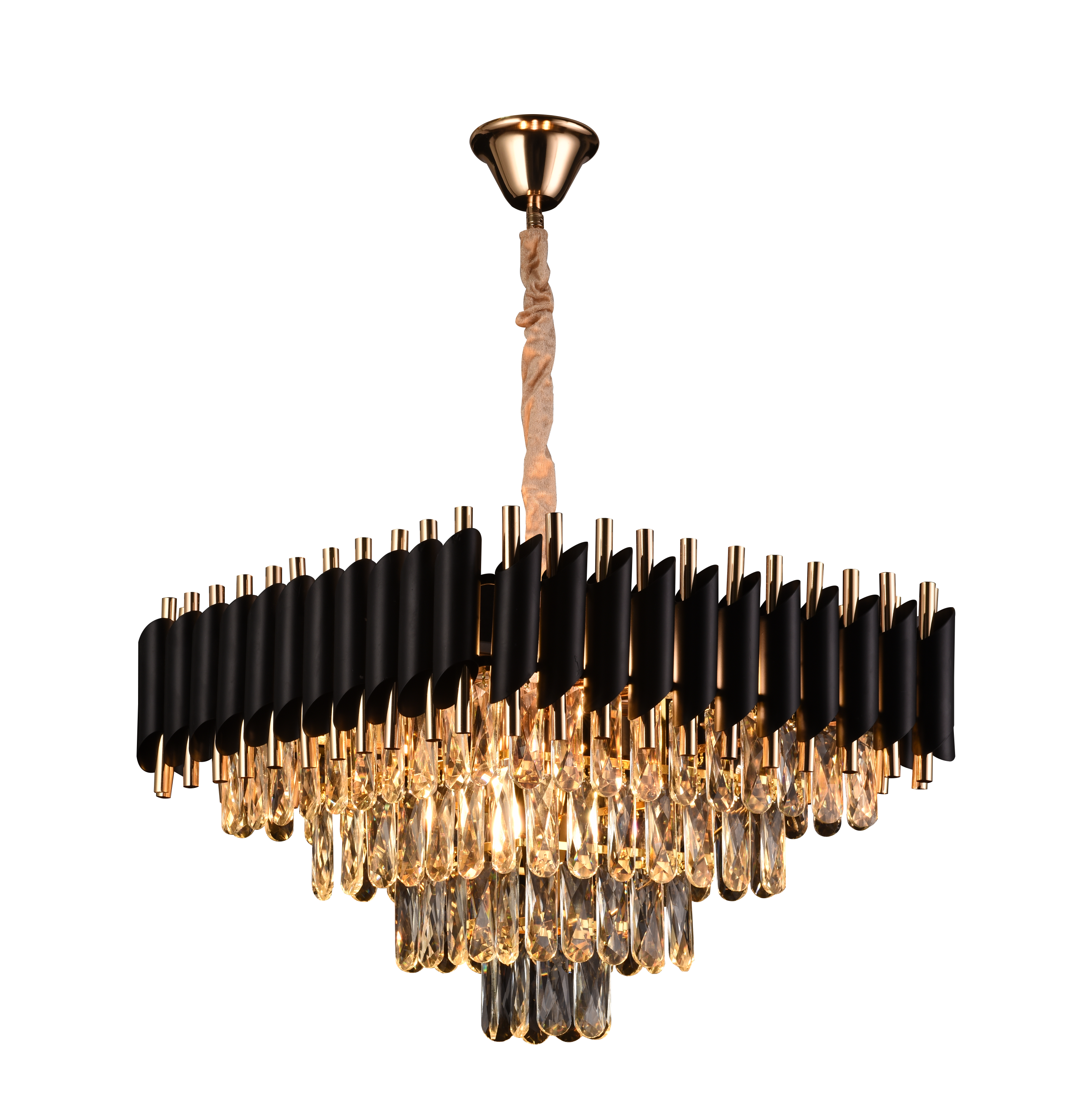 Candelabru cu cristal Versailles Nobile 5xE14, Ø38 cm, auriu-negru, inaltime reglabila