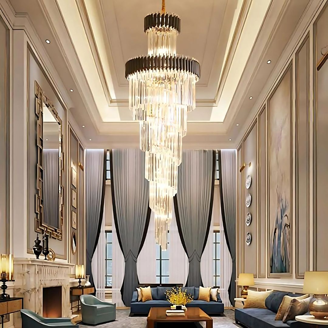 Utilizare recomandata: potrivit pentru holuri monumentale, livinguri spatioase, scari interioare, zone de receptie, showroom-uri sau spatii cu tavan inalt. Se recomanda montajul de catre electrician autorizat si alegerea becurilor E14 in functie de atmosfera dorita (cald/neutru/rece).