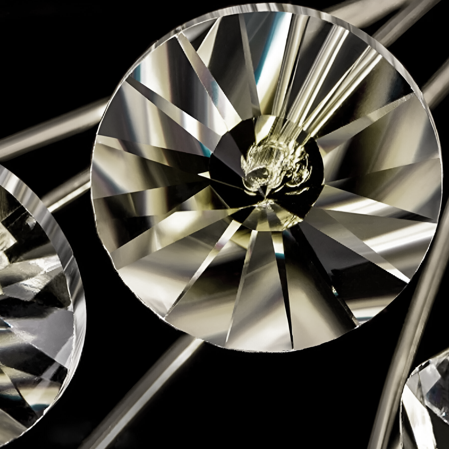 - Aspect premium: cristale clare + metal cu finisaj argintiu lucios