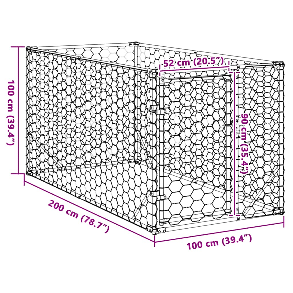 Canisa de exterior pentru caini cu usa 2x1x1 m otel galvanizat GartenMobel Dekor