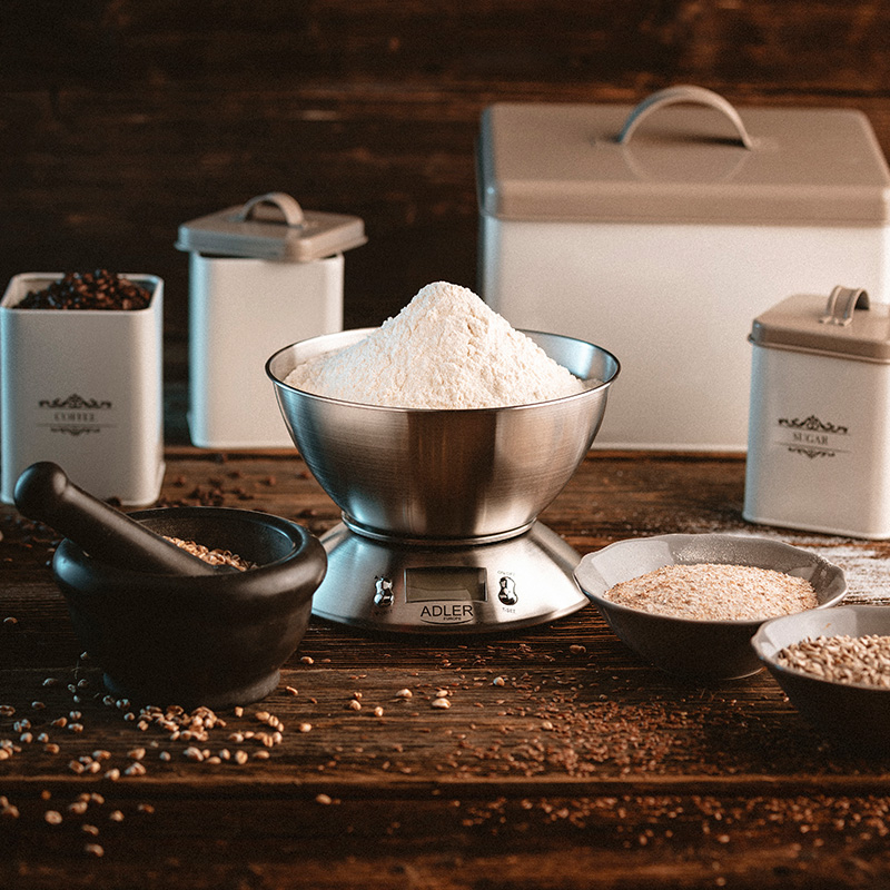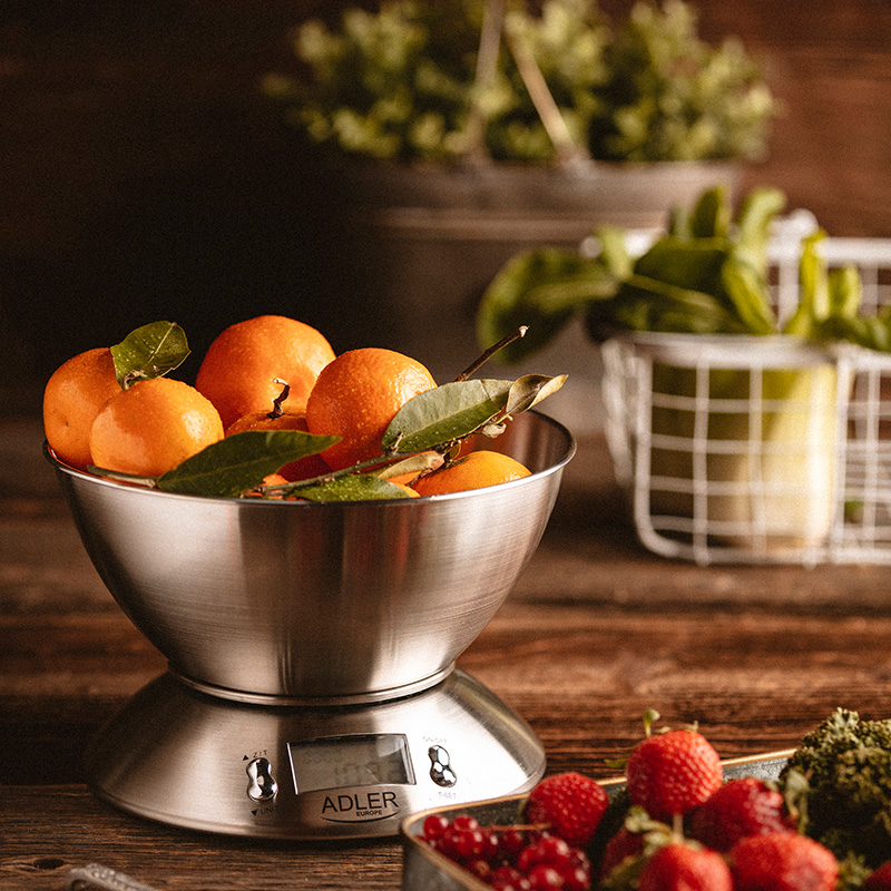 Cantar electronic de bucatarie cu o capacitate maxima de 5 kg si o precizie de 1 g. Extrem de util in pregatirea mancarurilor care necesita proportii strict definite de produse. Vă permite să cântăriți cu precizie chiar și cantități mici de produse. De asemenea, răspunde nevoilor persoanelor cărora le pasă de mărimea meselor din motive de sănătate. Datorită dimensiunilor sale mici, cântarul este usor de depozitat și permite un transport eficient. Are o opțiune de oprire automată sau manuală și un afișaj clar. Vasul estetic din oțel inoxidabil al cântarului este ușor de păstrat curat. În plus, cântarul poate fi folosit ca termometru și cronometru.