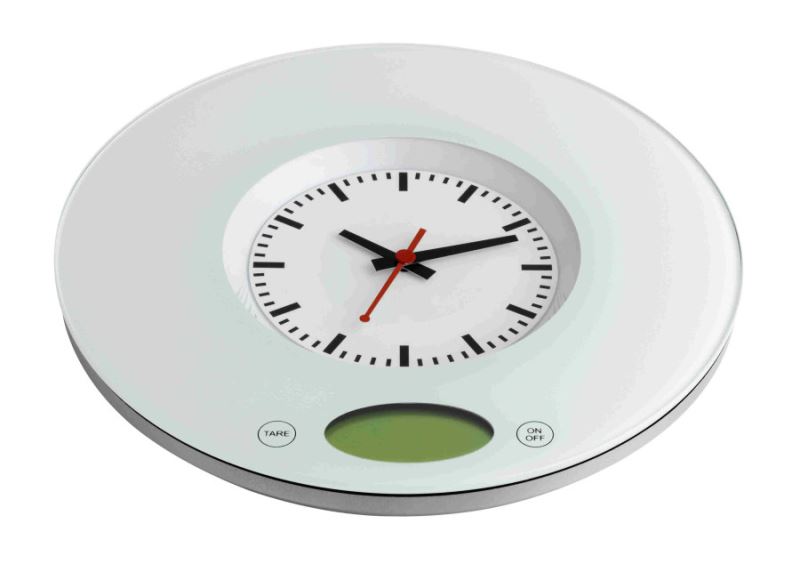 - 2 in 1: functioneaza ca ceas de perete si cantar pentru bucatarie