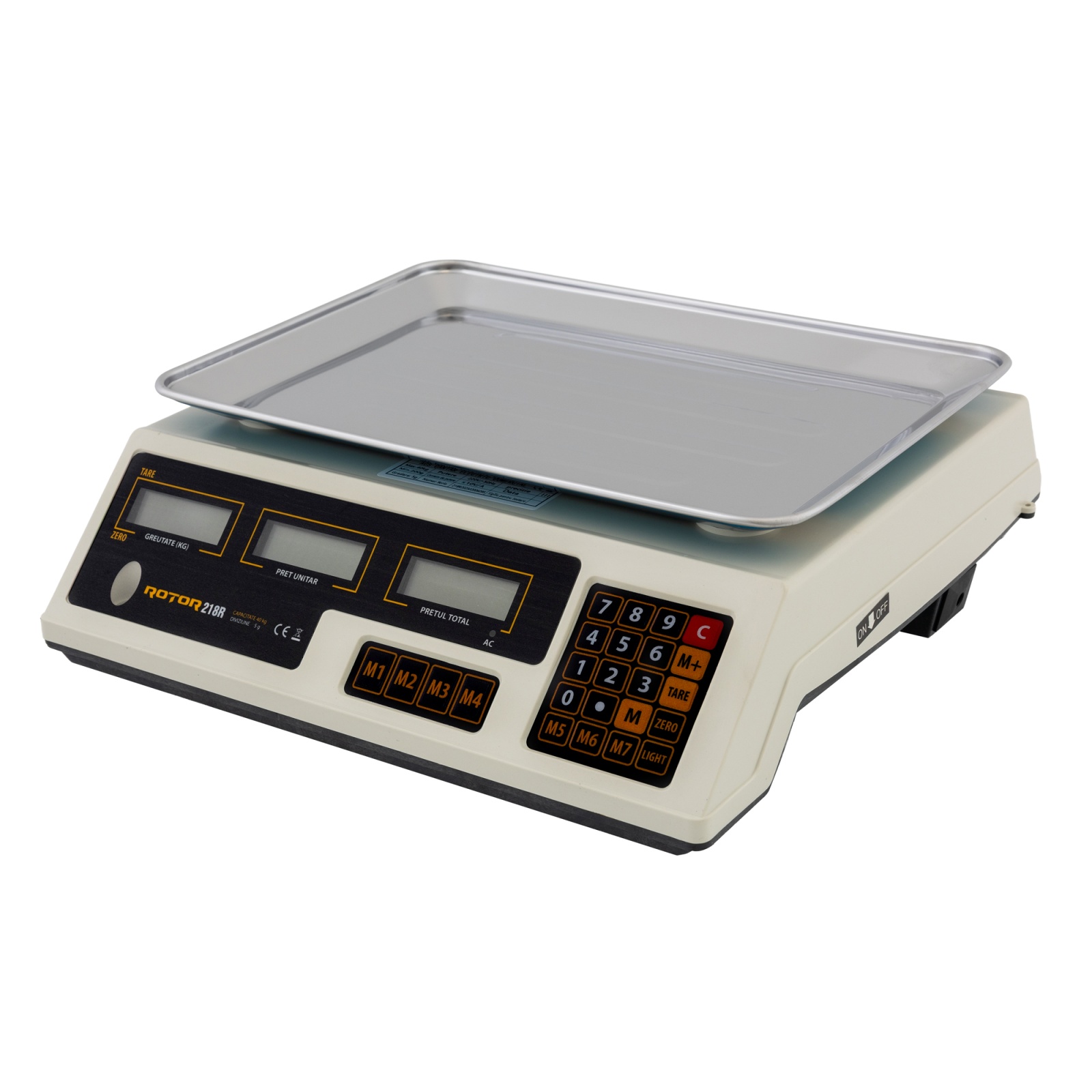 - Rapiditate: memorie pentru 7 prețuri (M1–M7) și taste dedicate Tare/Zero/Add.