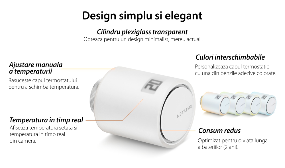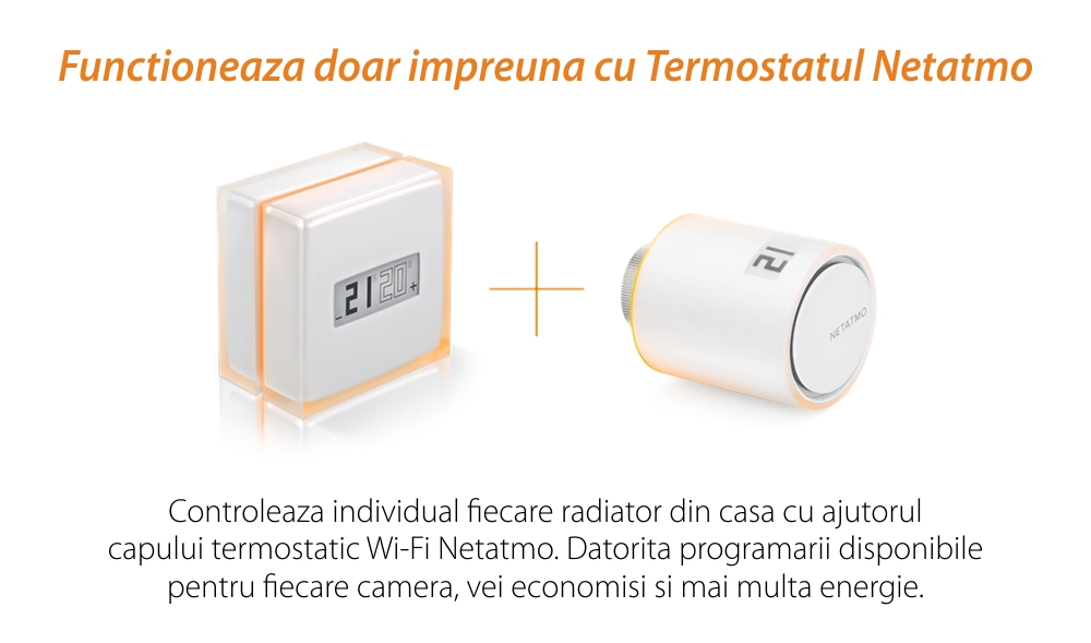 Specificatii Cap termostat Netatmo, Wi-Fi, Control aplicatie,