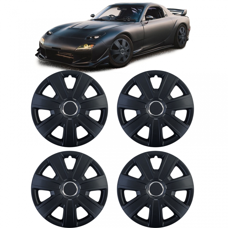 Capace de roți Tenzo-R IX de 15 inch, negre mate, set de 4 capace pentru jante de oțel Performance AutoTuning