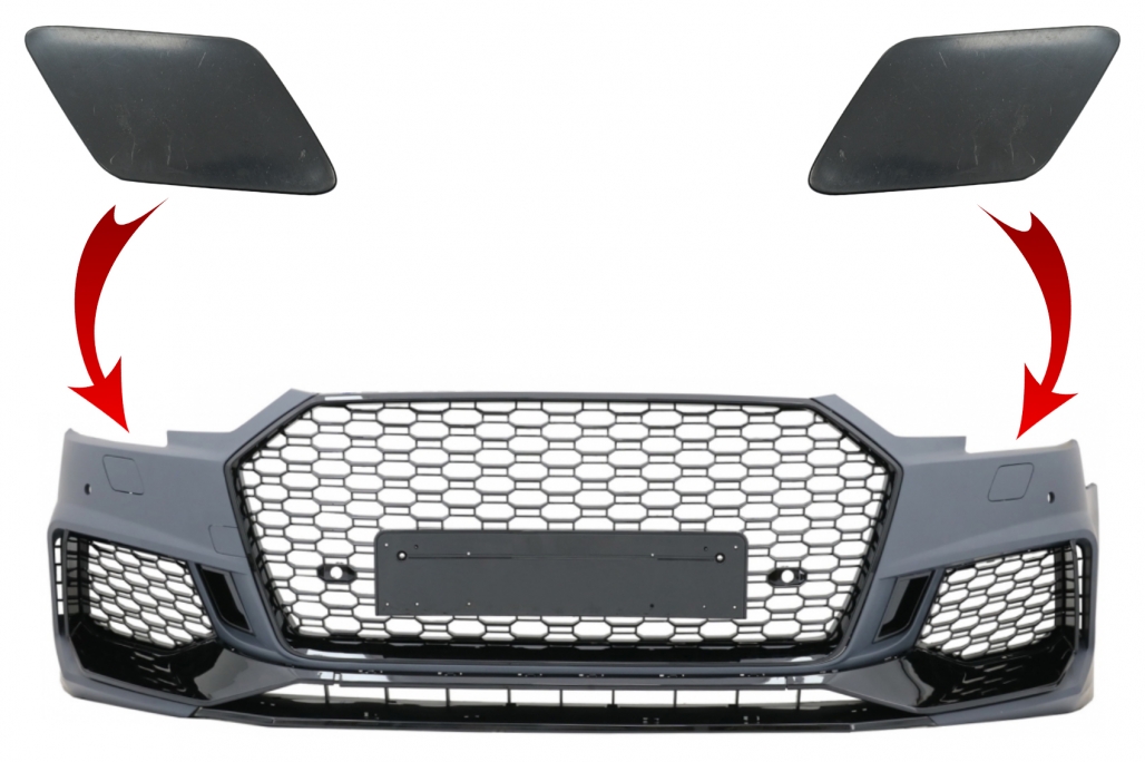 Setul de capace SRA bara fata pentru Audi A4 B9 8W este solutia potrivita pentru inlocuirea capacelor originale pierdute, uzate sau deteriorate. Aceste capace spalator faruri Audi A4 B9 sunt concepute pentru modelele Limousine si Avant din perioada 2016-2018, echipate cu bara fata RS4 Design. Realizate din plastic de buna calitate, piesele ofera o potrivire estetica foarte buna si sunt pregatite pentru finisare prin primer si vopsire.