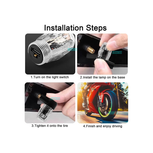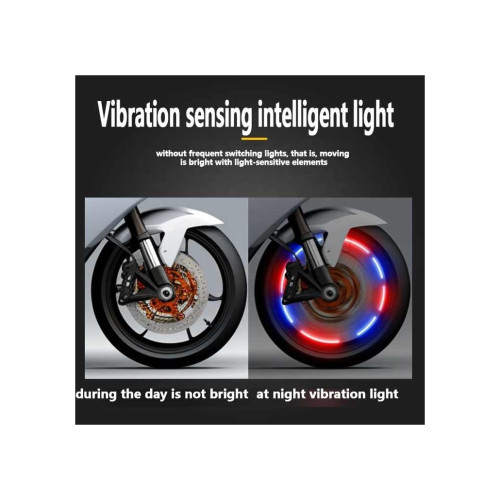 - Senzorul de lumină LED intermitent automat pentru anvelope aprinde lampa atunci când roata se mișcă, ceea ce poate crește vizibilitatea pe timp de noapte și vreme rea în toate direcțiile