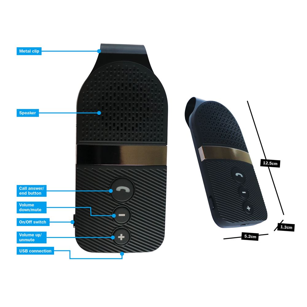 Condu mai confortabil si mai sigur cu acest car kit Bluetooth auto cu fixare pe parasolar, ideal pentru apeluri clare si utilizare zilnica. Dispozitivul ofera conexiune stabila prin Bluetooth 4.0, se imperecheaza usor si se reconecteaza automat dupa prima utilizare. Datorita functiei hands-free auto si sistemului de reducere a zgomotului si ecoului, poti vorbi mai clar chiar si in timpul deplasarilor.
