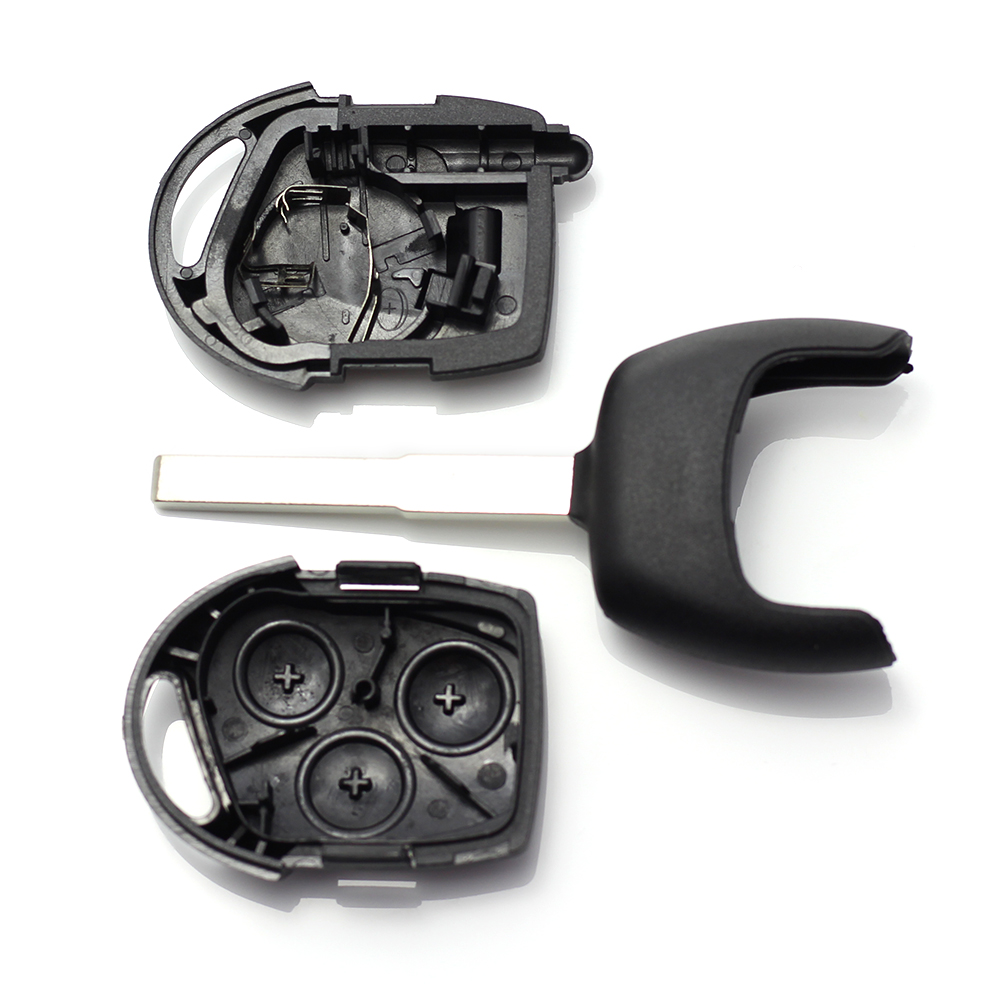 Înlocuiește ușor carcasa veche cu o carcasă cheie Ford practică, cu 3 butoane și suport baterie integrat. Ideală când plasticul este crăpat, butoanele sunt tocite sau cheia nu mai stă bine închisă. Recomandăm să compari atent cu cheia originală (lamă, locaș electronic, suport baterie) înainte de comandă.