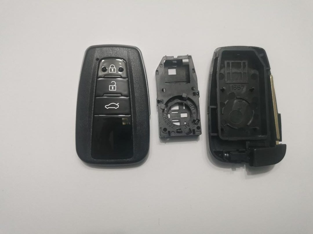 Înlocuiește rapid carcasa uzată cu o carcasă cheie Smartkey Toyota cu 3 butoane, concepută pentru un aspect ca nou și o utilizare confortabilă. Modelul include suport baterie (ca în imagine) și lamelă, fiind o soluție practică pentru recondiționarea cheii fără costuri mari.