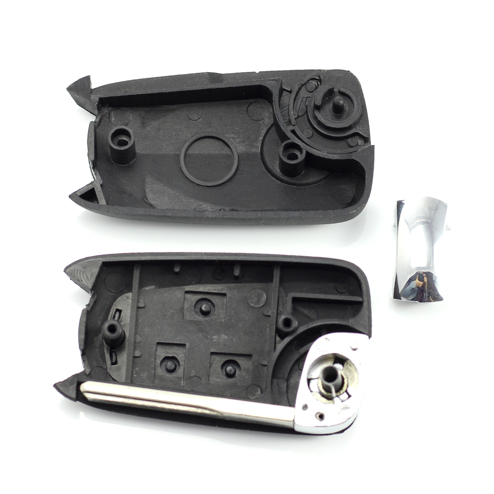 Important: electronica și transponderul se mută din cheia ta originală (din varianta cu lamă fixă). Înainte de comandă, te rugăm să compari cu atenție carcasa originală: poziția plăcii electronice, suportul bateriei, tipul lamei și prinderile interioare.