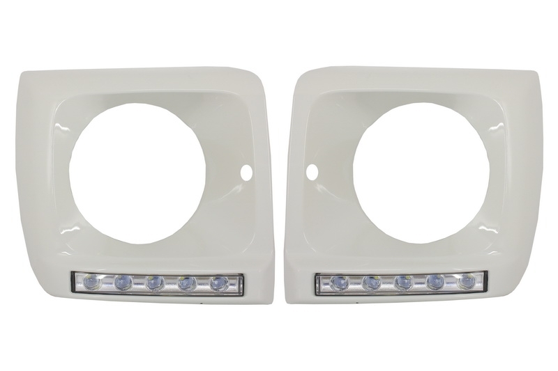 Carcasa faruri alba cu LED DRL pentru Mercedes G-Class W463 1989-2012