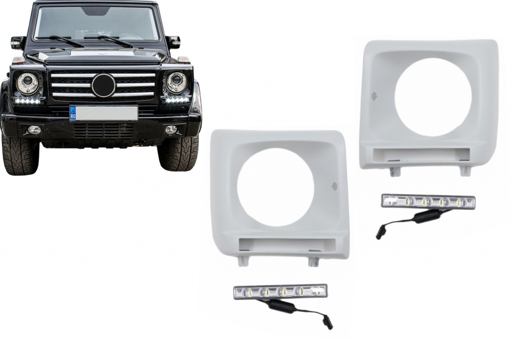 Carcasa faruri cu Lumini de zi dedicate LED DRL Mercedes G-Class W463 (2002-2018) G65 Design Crom