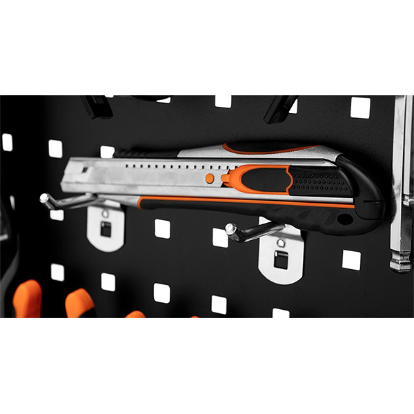 - Fabricat din otel si este unul dintre elementele sistemului NEO . Carligul usureaza agatarea uneltelor in timpul lucrului, ajuta la pastrarea lucrurilor in ordine si ofera acces rapid la unelte. Produsul completeaza sistemul NEO . Prin utilizarea diferitelor elemente ale sistemului NEO, obtineti posibilitatea de a va compune propriul spatiu ideal de depozitare a sculelor