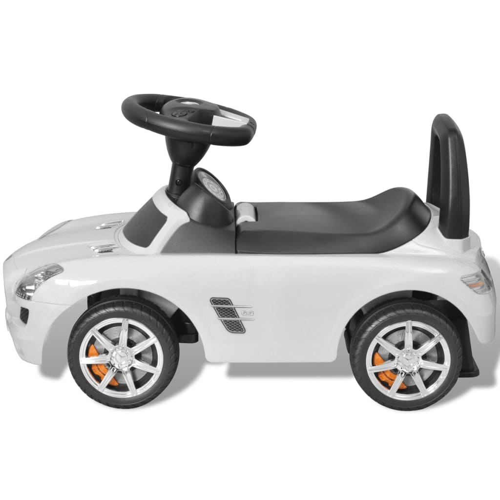 Redă șase melodii care sunt activate de butoanele de pe volan. De asemenea, poate emite sunete de claxon pentru a imita o mașină adevărată. Are un spațiu de depozitare sub scaun pentru a ține mici jucării. Datorită construcției sale durabile din plastic, această mașină de tip push car este capabilă să suporte până la 23 kg și este potrivită pentru copiii de peste 2 ani. Baza stabilă cu patru roți permite copiilor să urce și să coboare ușor singuri.