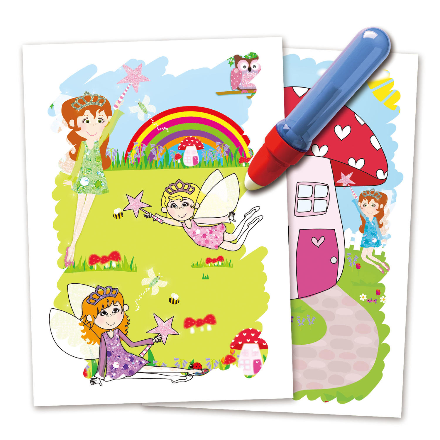 Mod de utilizare: umple stiloul cu apa, apoi trece varful peste paginile cartii. Culorile si ilustratiile ascunse vor aparea ca prin magie. Dupa ce pagina se usuca, imaginea dispare, iar copilul poate relua activitatea.