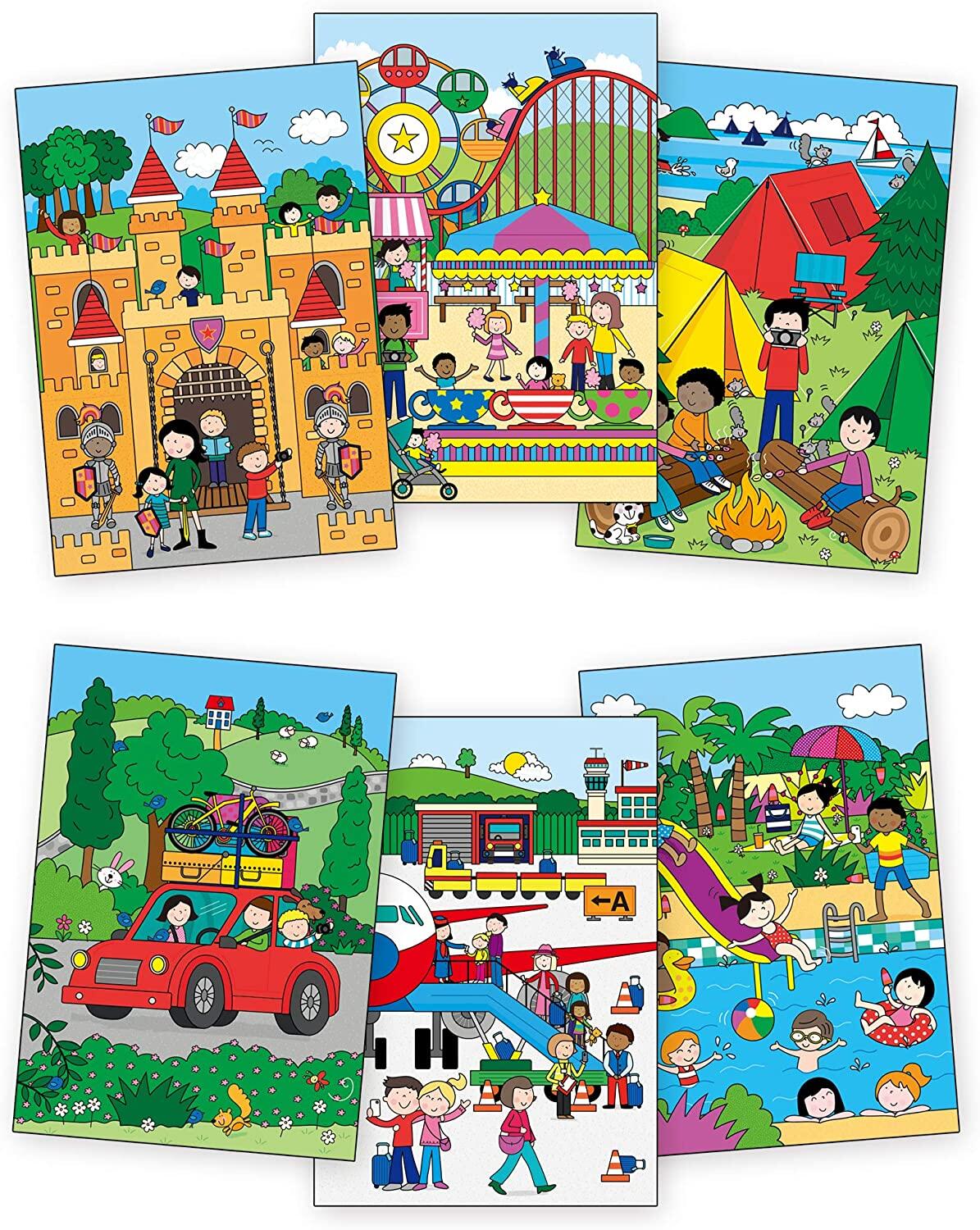 Copiii se bucura de o experienta interactiva, iar parintii apreciaza faptul ca aceasta carte de colorat reutilizabila poate fi folosita de mai multe ori. Dupa aproximativ 10-15 minute, paginile se usuca si revin la aspectul initial, pregatite pentru o noua sesiune de joaca. Tema de vacanta si activitatile de tip „look and find” ajuta la dezvoltarea atentiei, indemanarii si recunoasterii imaginilor.