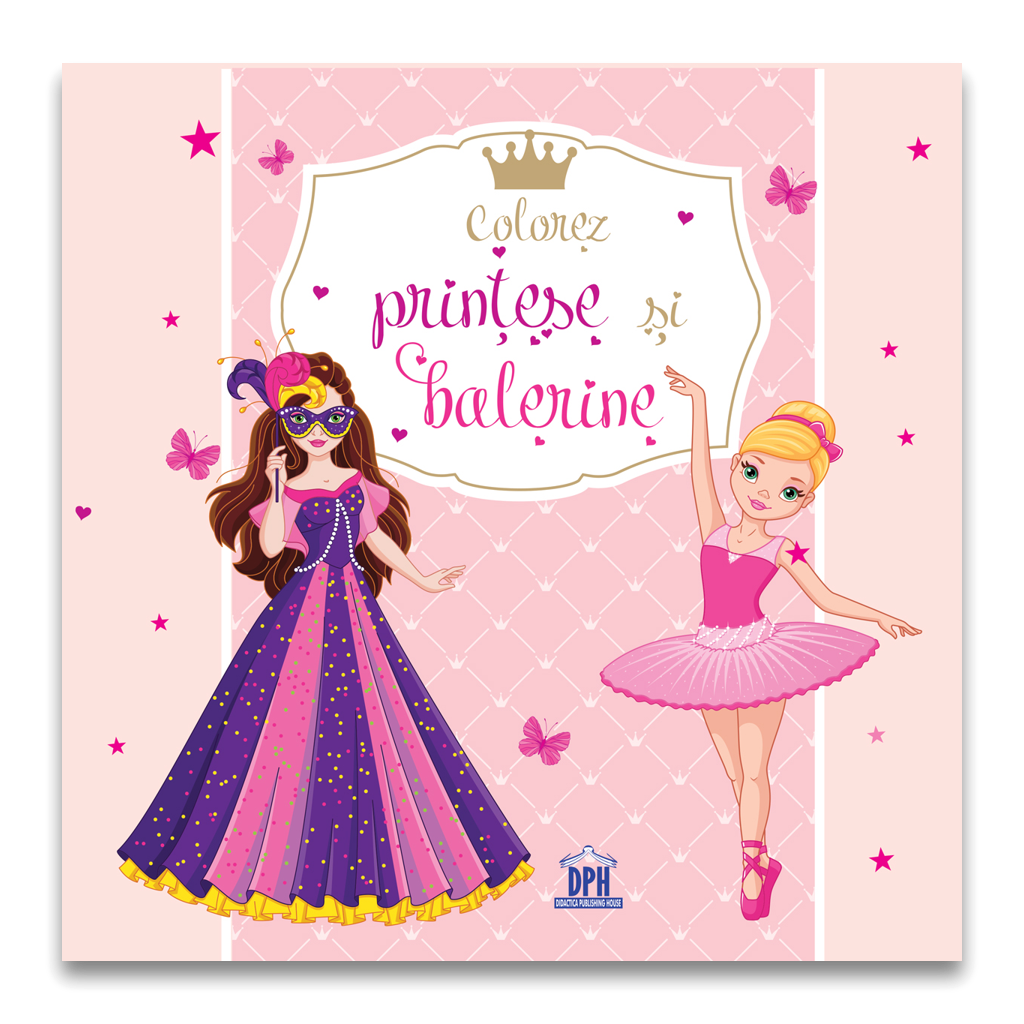 Carte de colorat pentru copii cu printese si balerine, coperta cartonata