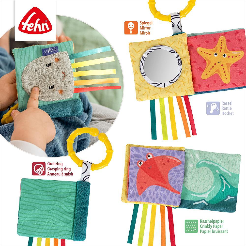 Texturile variate, panglicile colorate, sunetele și oglinda pentru bebeluși contribuie la dezvoltarea simțurilor, a reflexului de prindere și a recunoașterii de sine. Datorită inelului de prindere, cărticica poate fi atașată ușor la cărucior, pătuț sau scoică auto, fiind ideală atât acasă, cât și în deplasare.