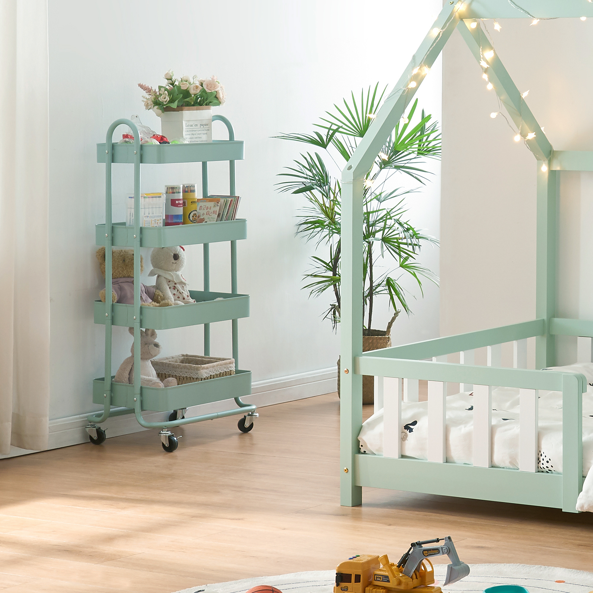 Poate fi folosit in bucatarie dar si in baie deopotriva, unde ofera posibilitatea depozitarii practice a accesoriilor de baie. Caruciorul este deosebit de practic si la birou, in vederea depozitarii si transportarii ordonate a diferitelor mape si documente, astfel oferind un serviciu excelent.