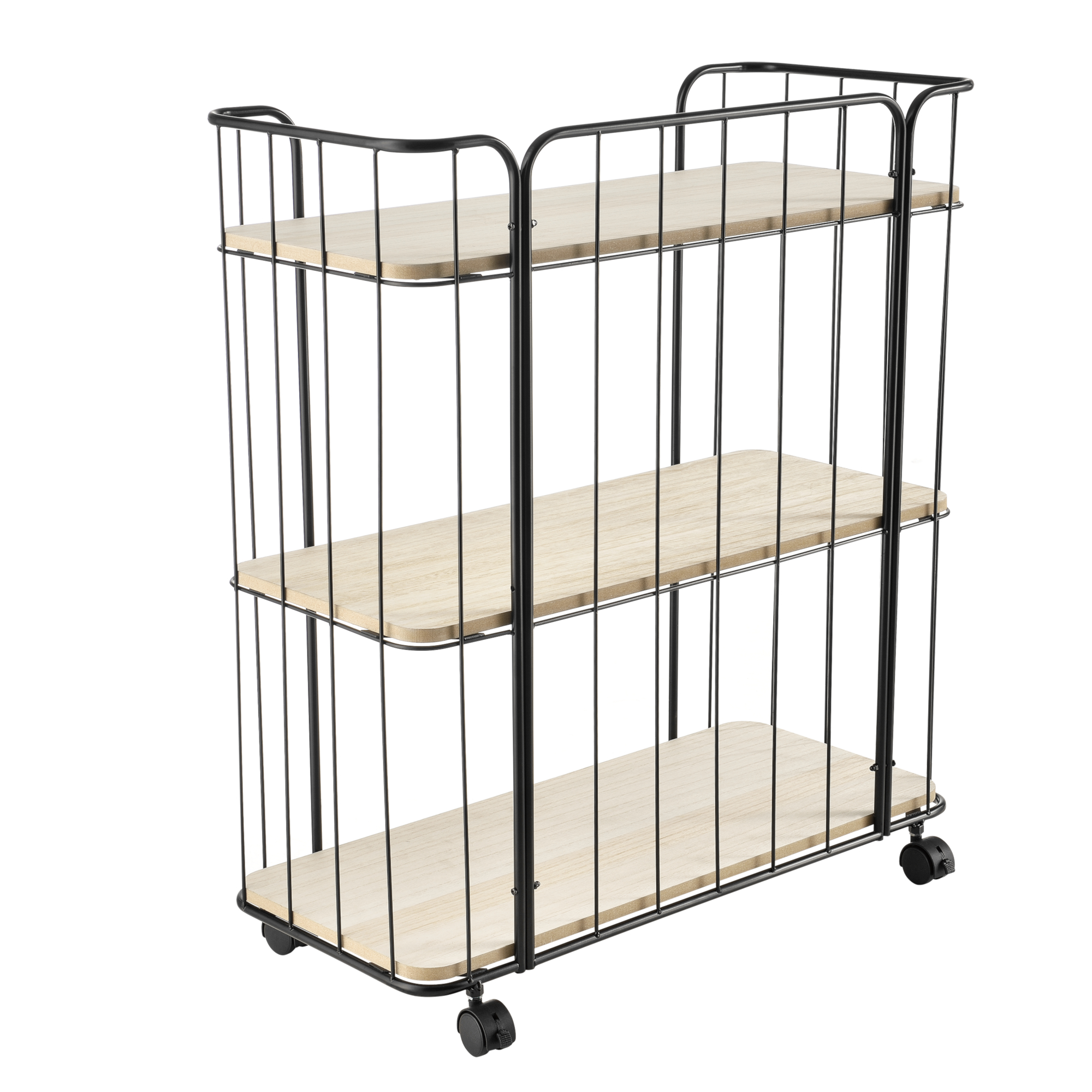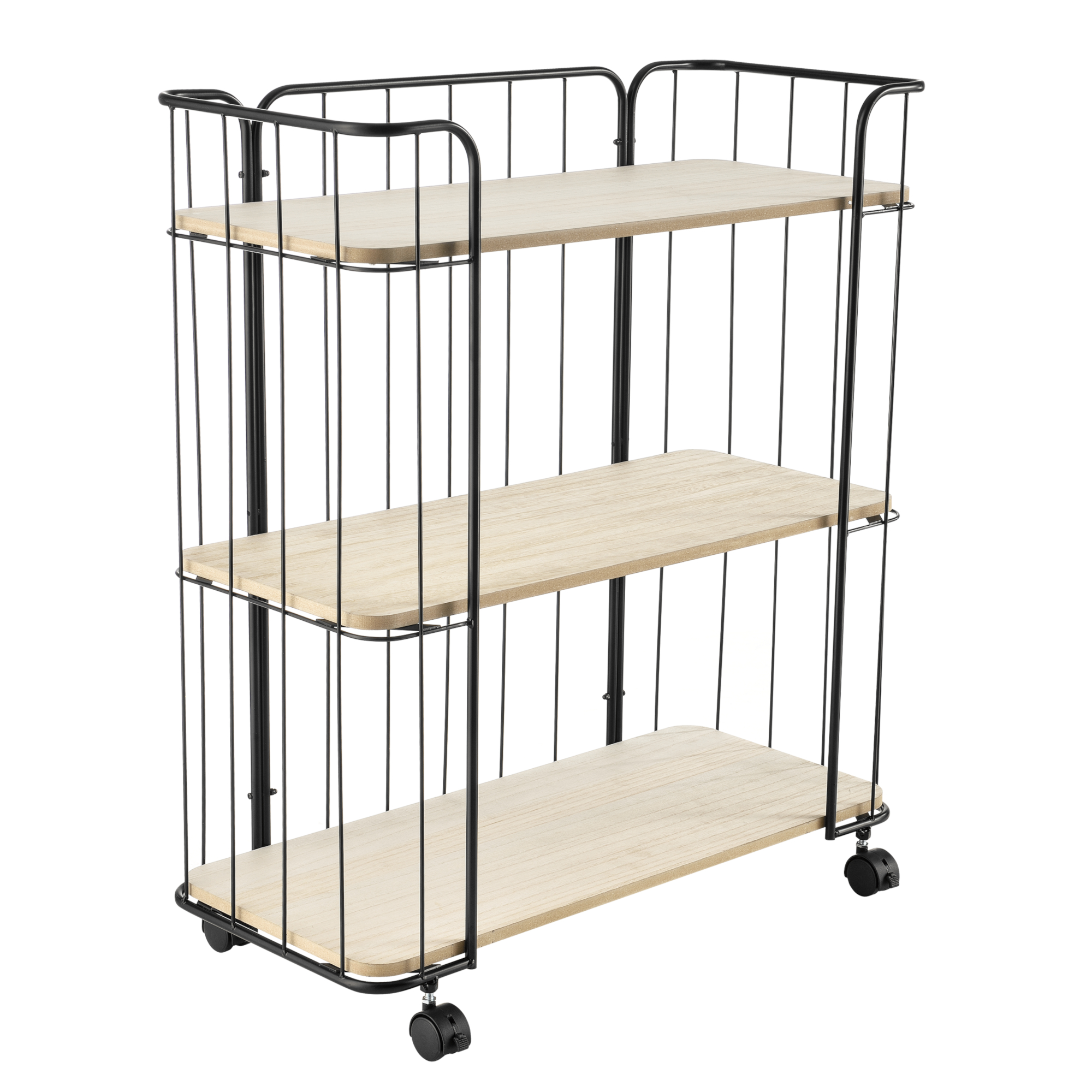 Acest cărucior auxiliar este ideal pentru depozitarea obiectelor mici și medii în locuință. Poate fi folosit lângă canapea pentru reviste și telecomenzi, în bucătărie pentru recipiente și veselă sau ca suport mobil pentru servirea băuturilor și gustărilor.