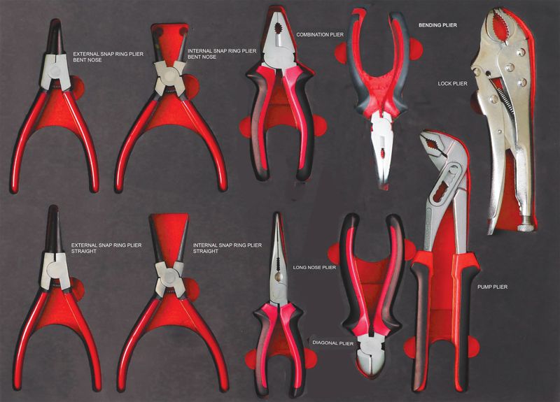 - Clești: combinați, cu vârf lung, tăietor, pentru țevi, autoblocant + 4x pentru inele Seeger