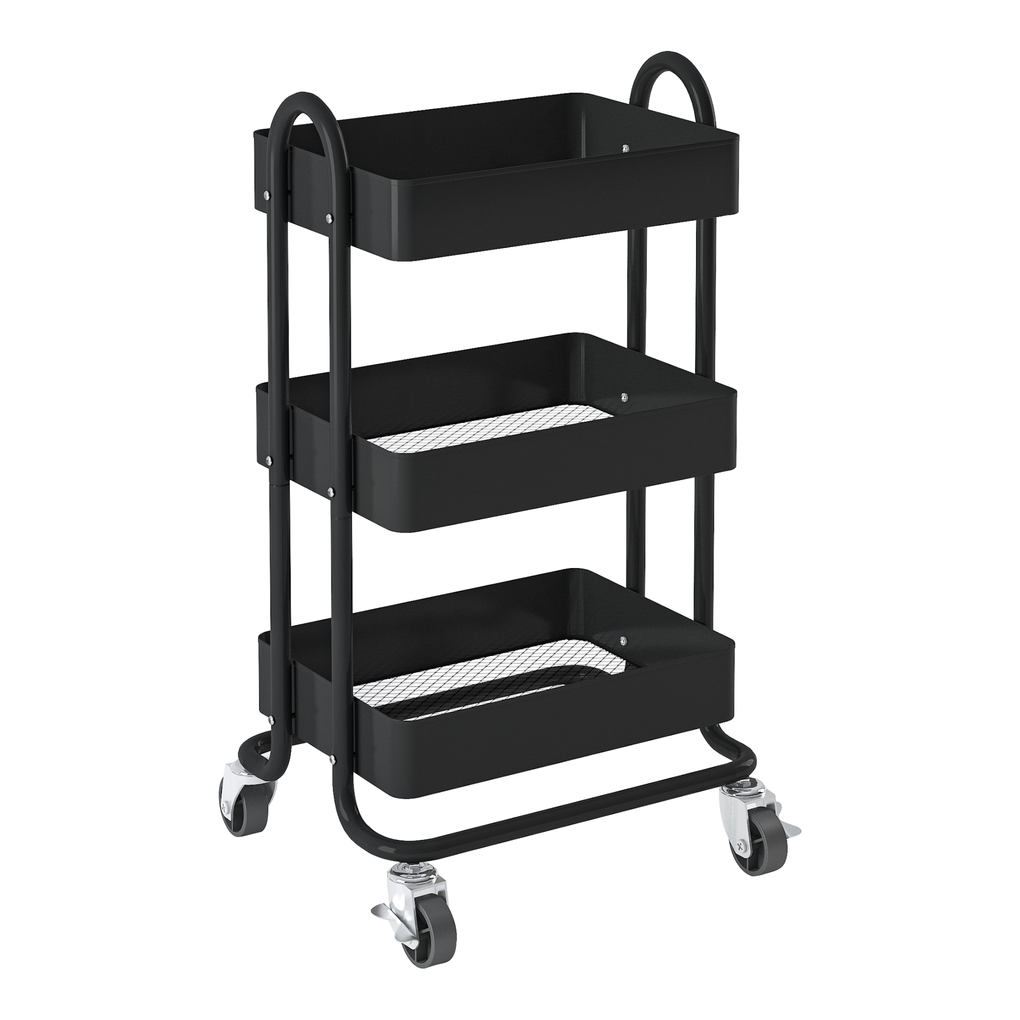 Cărucior de bucătărie Pyhäntä cu 3 niveluri și roți, negru mat