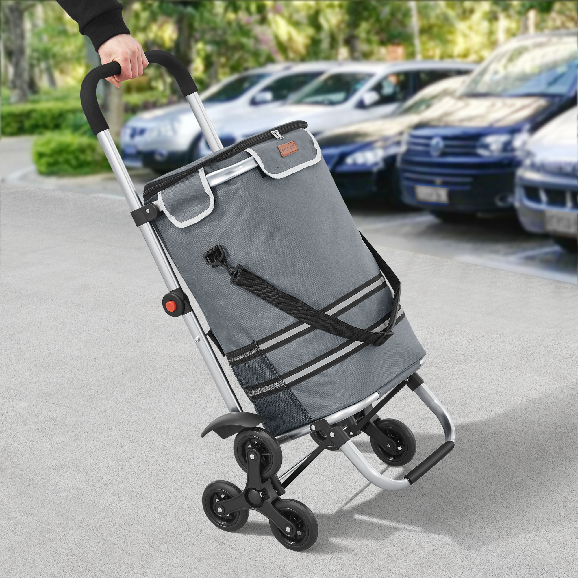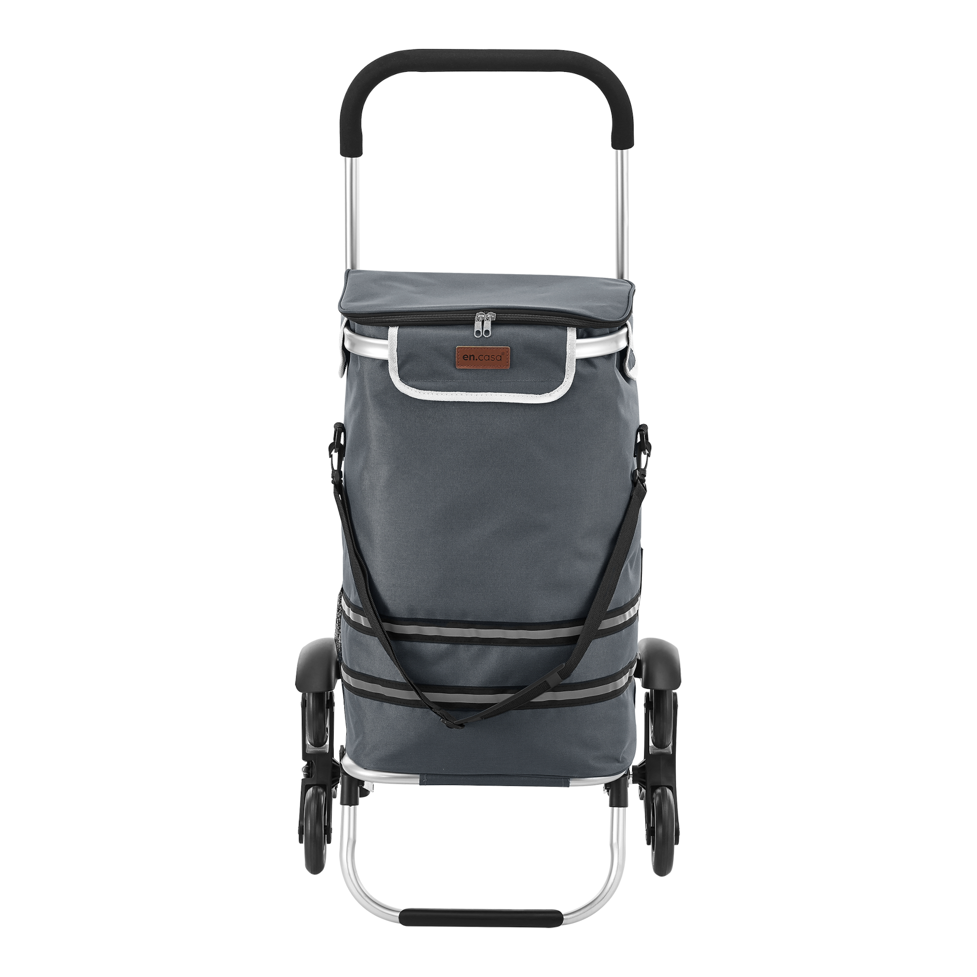 Caruciorul de cumparaturi pliabil este alegerea ideala pentru drumurile zilnice la magazin, piata sau pentru mici deplasari. Datorita cadrului usor din aluminiu, manerului antiderapant si rotilor speciale pentru trepte, ofera transport comod, sigur si mult mai putin obositor. Designul modern in nuanta gri inchis il face practic si usor de integrat in orice gospodarie.