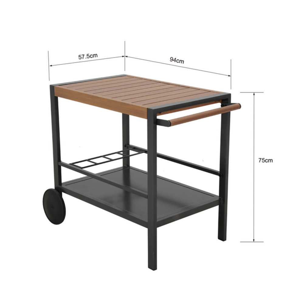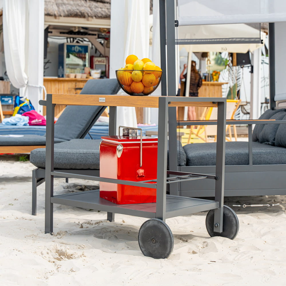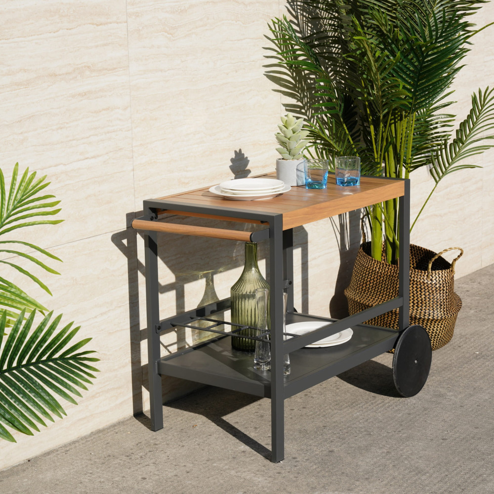 Căruciorul de grădină Mirpol Duisburg este alegerea potrivită când vrei să servești rapid și elegant băuturi sau gustări pe terasă, în grădină ori chiar în living. Designul minimalist, în nuanță antracit, se potrivește ușor în amenajări moderne, iar construcția din aluminiu îl face practic pentru utilizare în exterior.