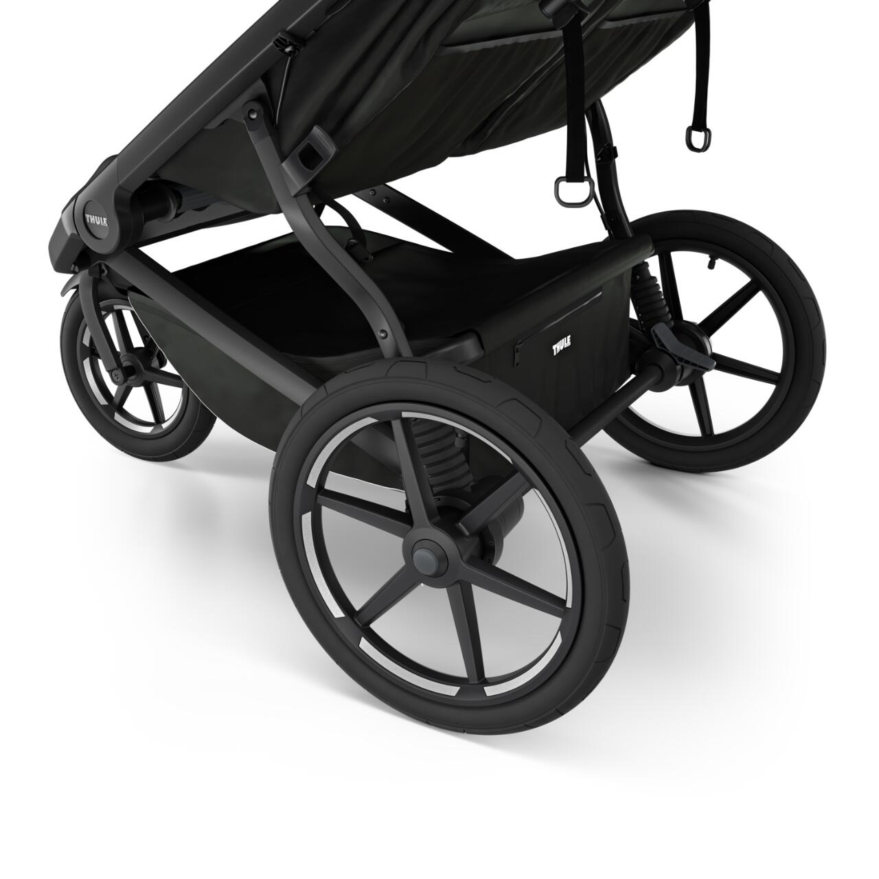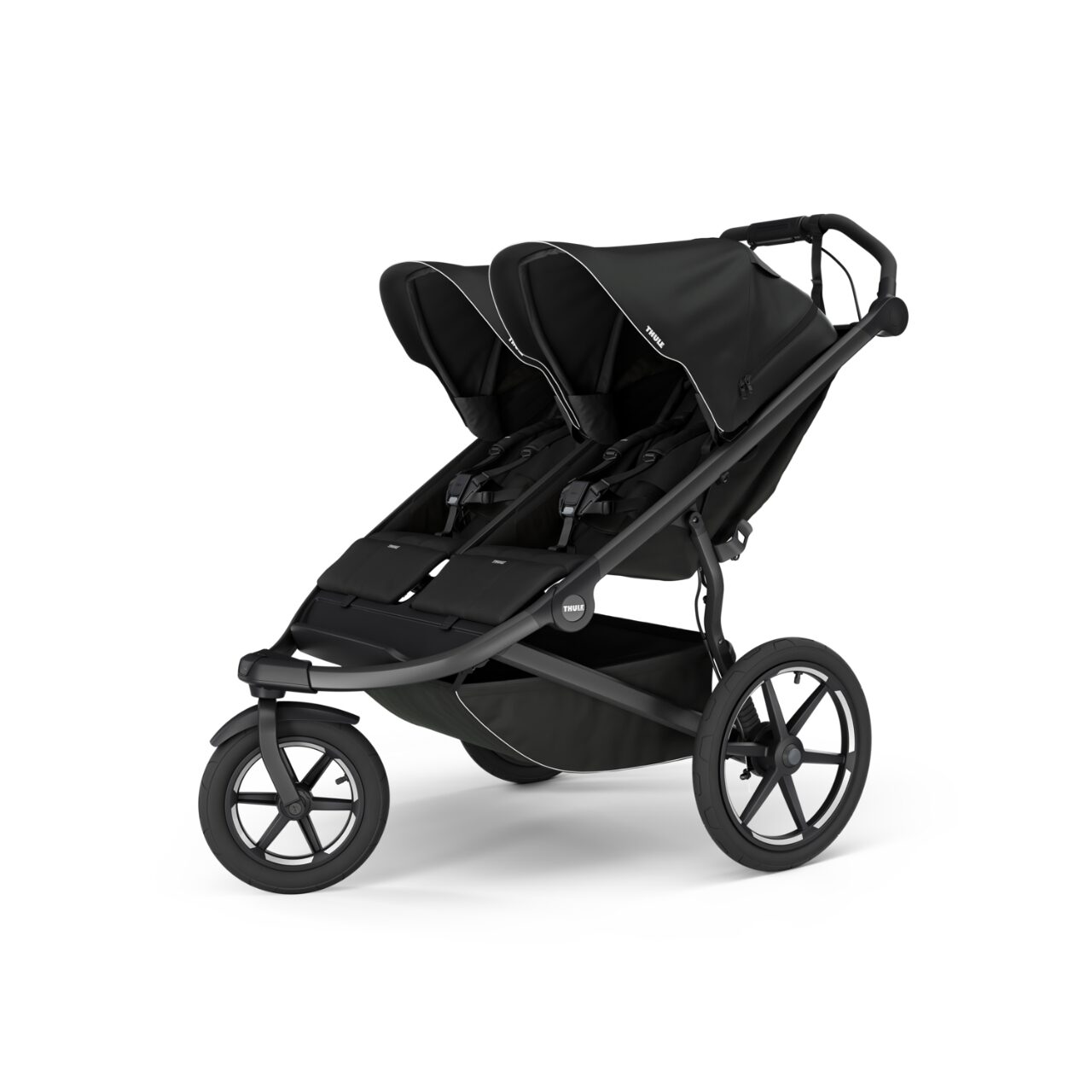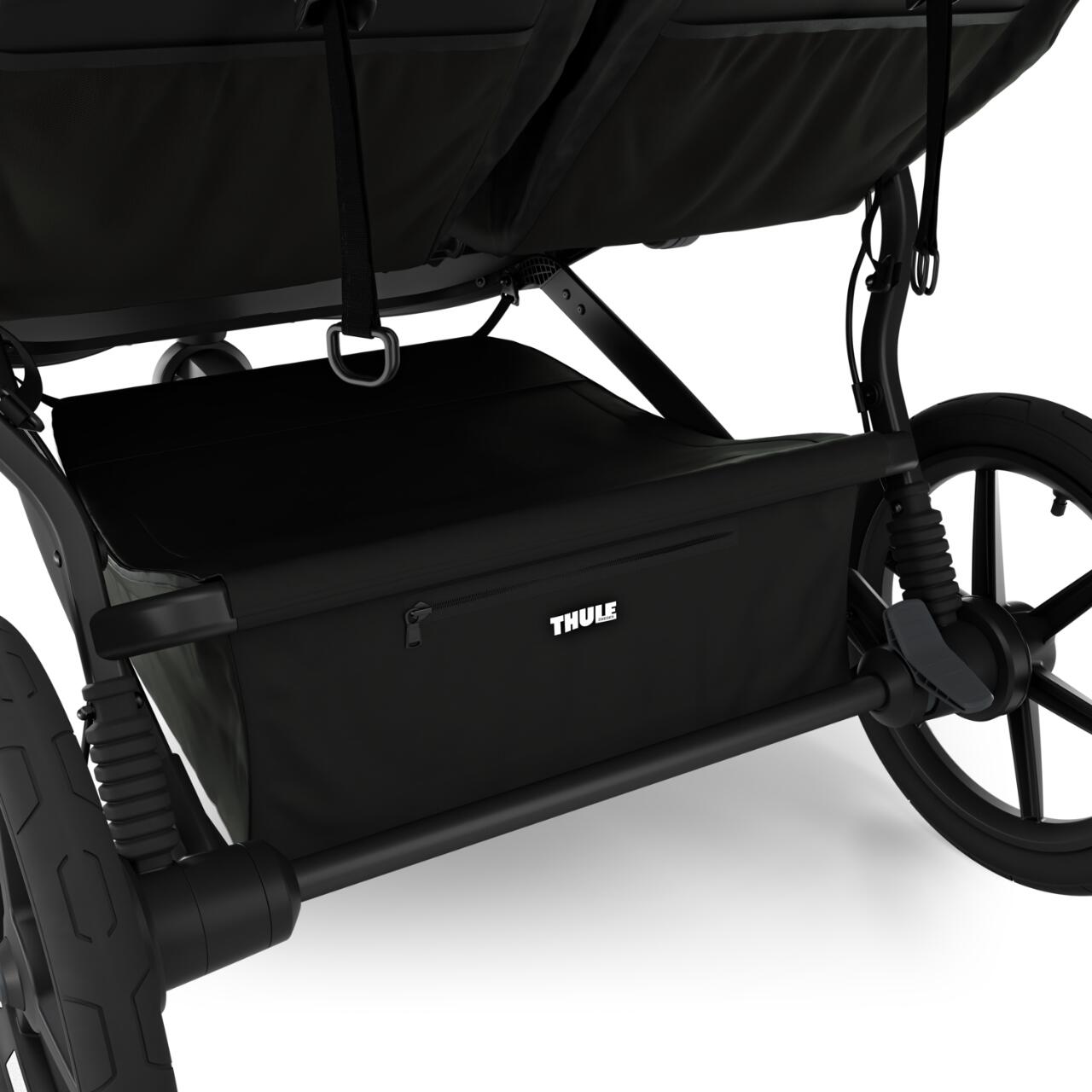 Acest cărucior sport dublu este potrivit pentru plimbări zilnice, ieșiri în parc, vacanțe sau trasee pe suprafețe variate. Trecerea ușoară prin uși și compartimentul generos de depozitare îl fac practic pentru familiile care au nevoie de mobilitate și spațiu. Poate fi utilizat de la vârste mici împreună cu landoul Thule Bassinet sau adaptor pentru scaun auto pentru sugari, disponibile separat.
