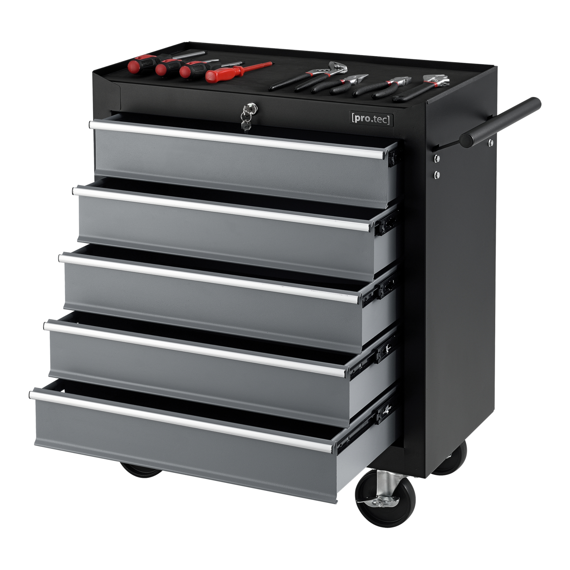 Căruciorul pentru scule cu 5 sertare este soluția practică pentru organizarea eficientă a uneltelor în garaj, atelier sau spațiu de lucru profesional. Construcția solidă din oțel vopsit în câmp electrostatic, compartimentarea generoasă și mobilitatea oferită de cele 4 roți îl transformă într-un ajutor de încredere pentru depozitare și transport.