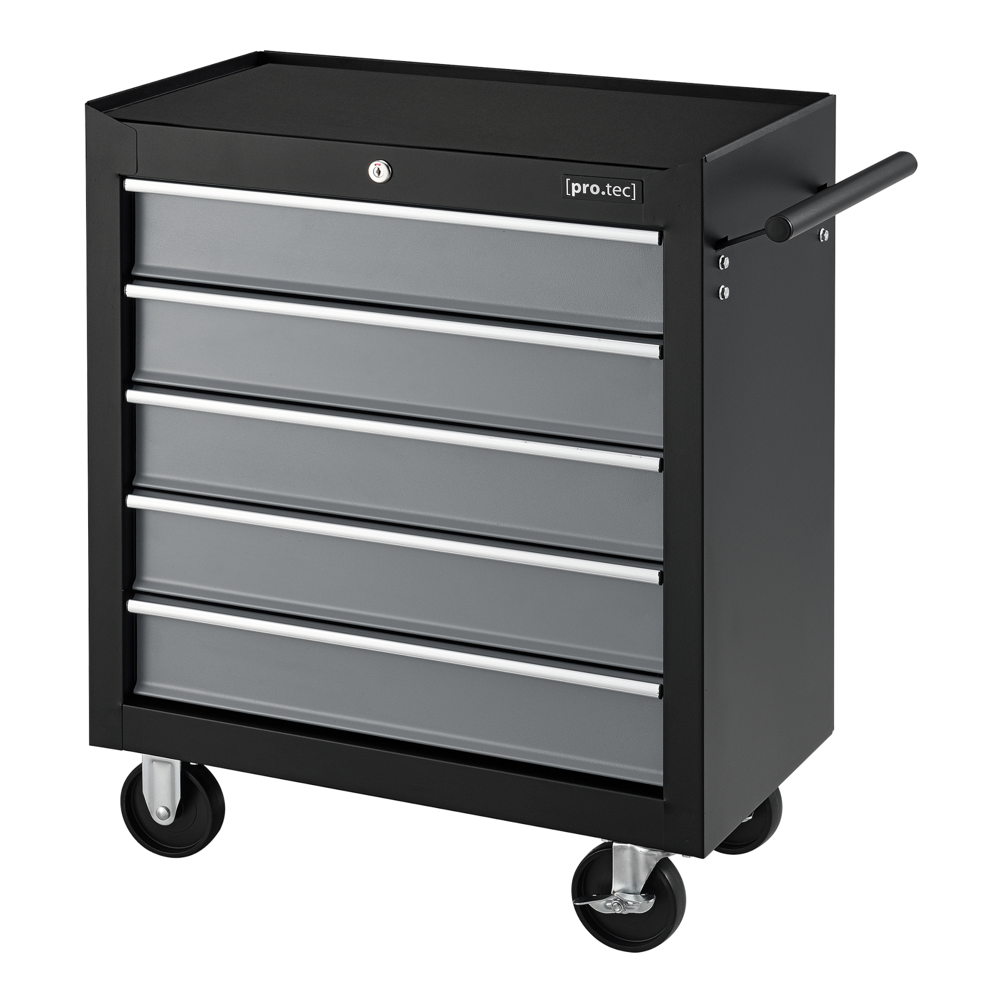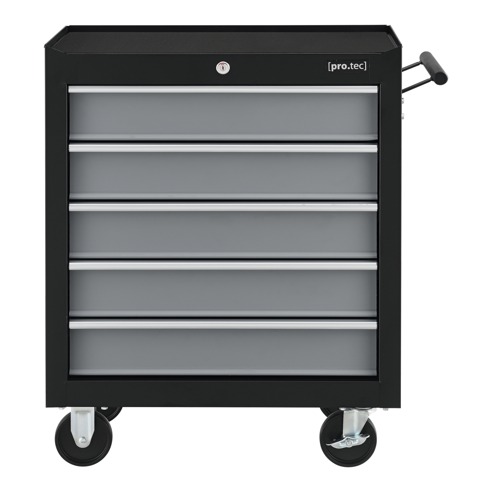 Cărucior pentru scule cu 5 sertare și 4 roți din oțel, negru