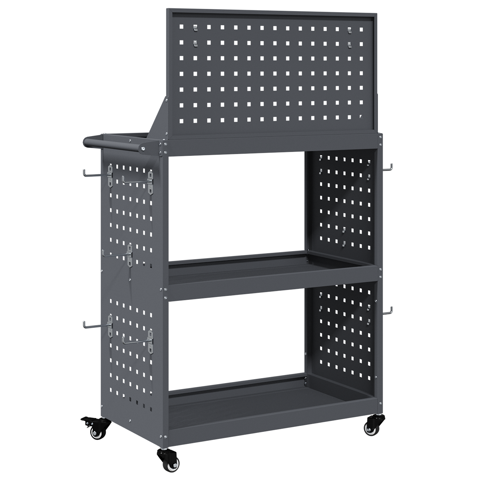 Cărucior pentru unelte cu raft cu roata cu depozitare Manual Antracit 65 x 35 x 111 cm GartenMobel Dekor