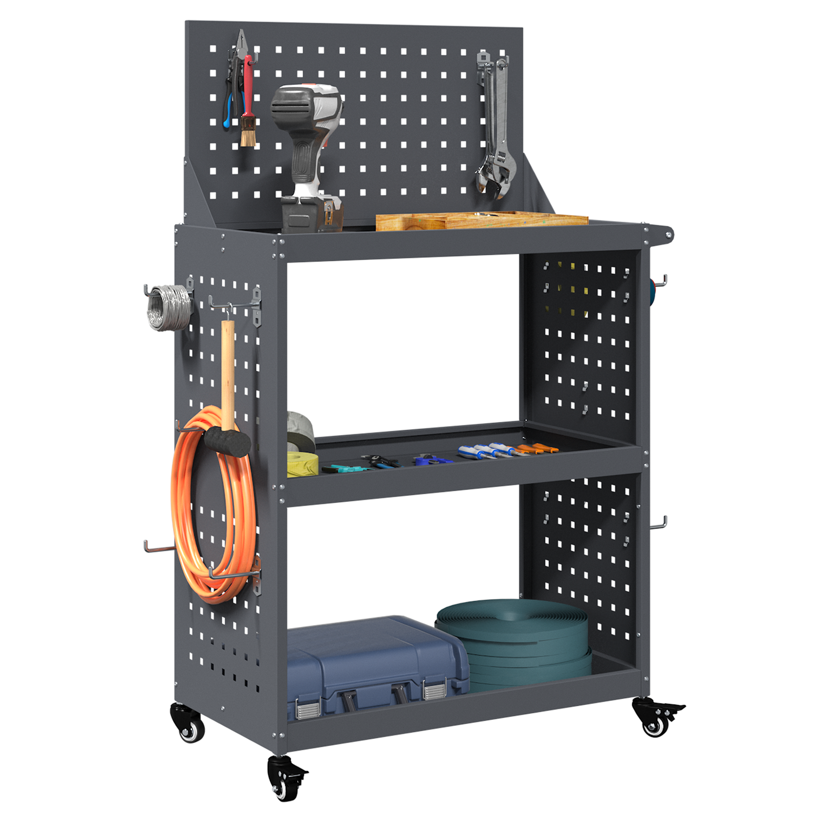 Căruciorul acesta pentru unelte e super robust și se potrivește perfect în orice atelier sau garaj, aducând un vibe industrial fain, dar și foarte practică. Are mult spațiu de stocare, iar finisajul mat îl face să arboreze un look chic. Fie că ești un meșteșugar sau pur și simplu îți place DIY-ul, acest organizer te ajută să lucrezi mai eficient, ținând uneltele la îndemână și bine organizate.