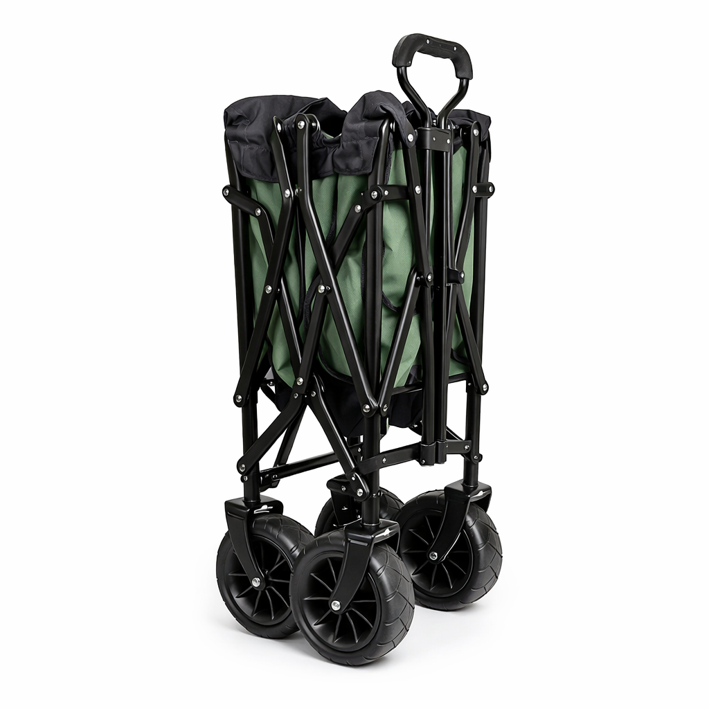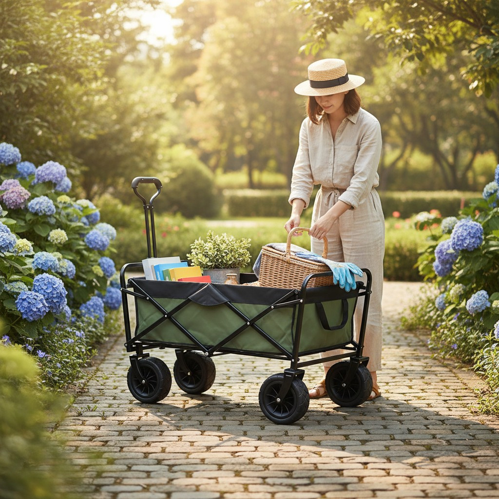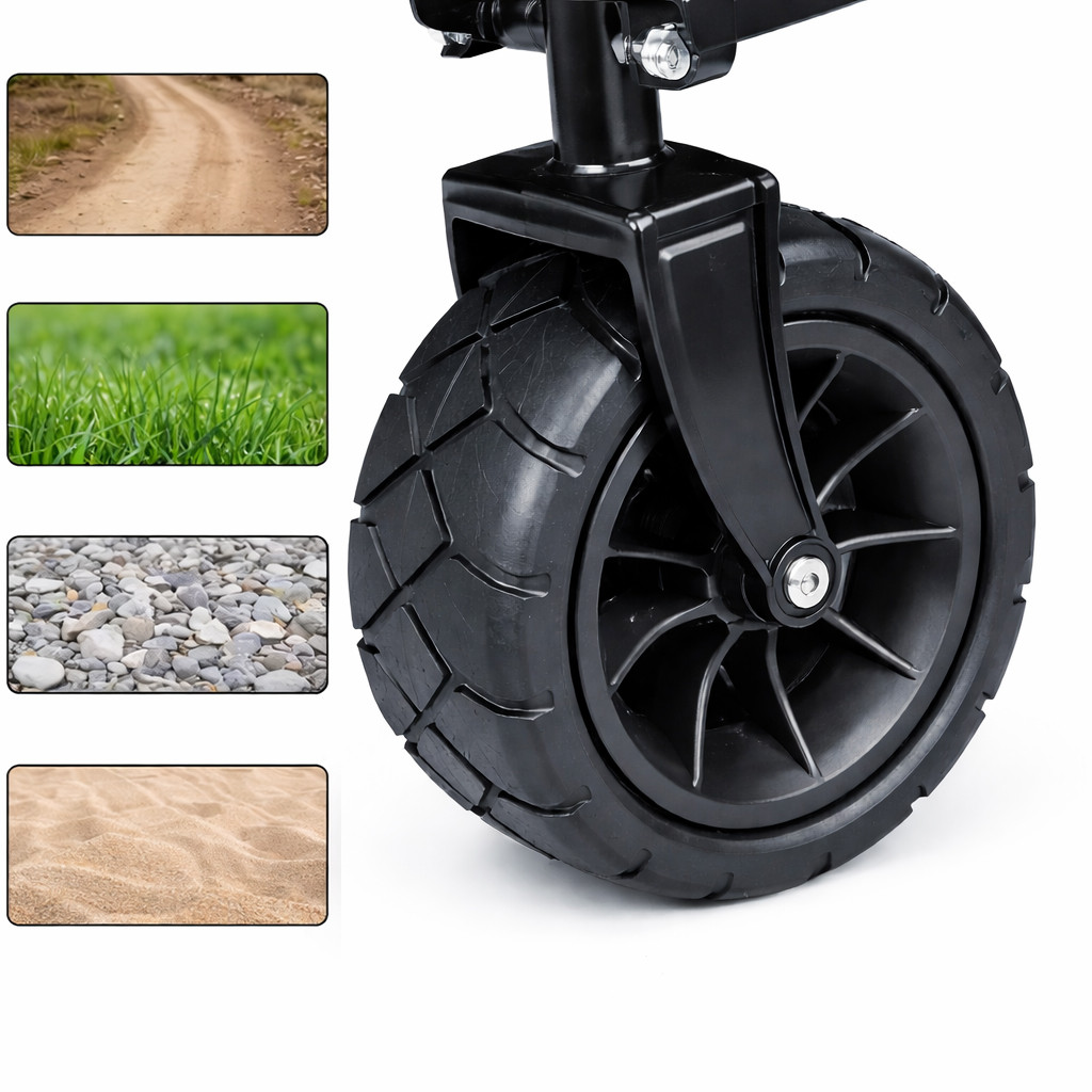 Utilizare: Desfasoara caruciorul, fixeaza husa, incarca uniform obiectele si trage-l folosind manerul. Dupa utilizare, curata husa si pliaza-l pentru depozitare.