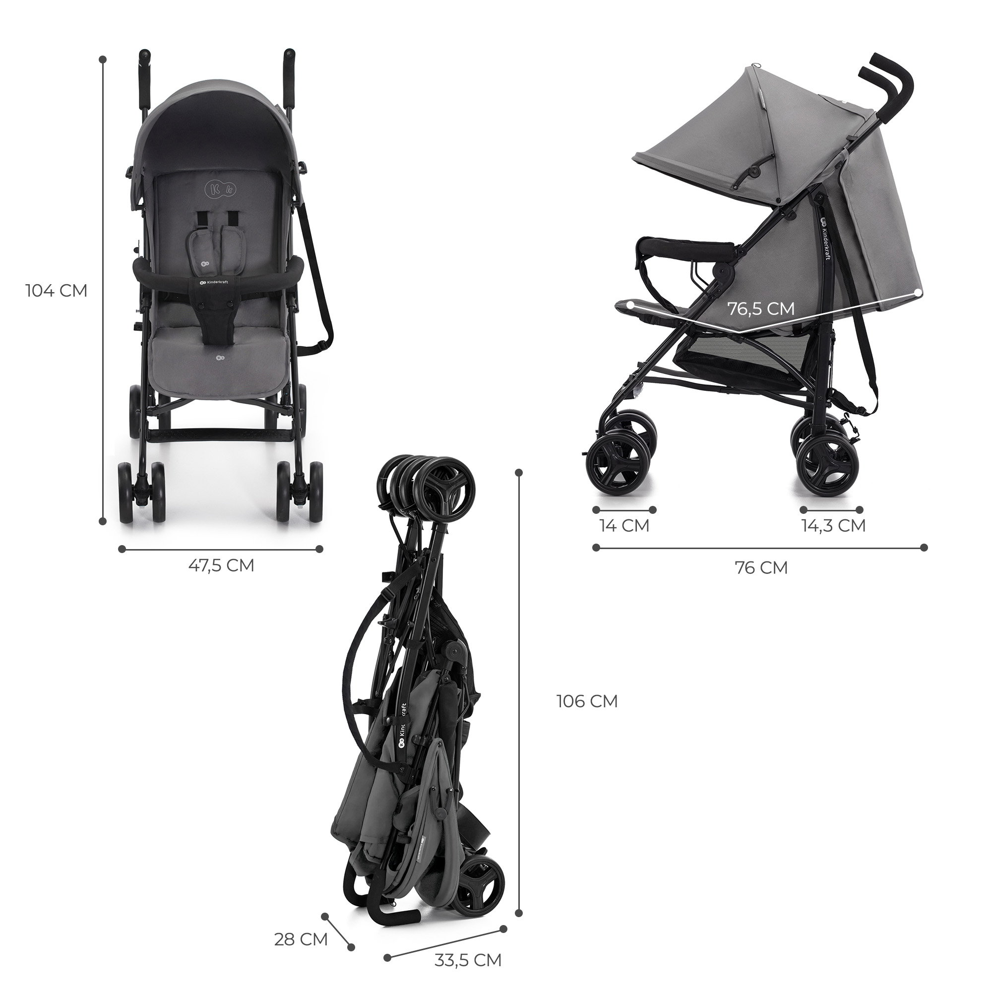 Alege caruciorul sport Kinderkraft TIK daca iti doresti un model usor, practic si confortabil pentru plimbarile zilnice sau pentru vacante. Cu o greutate de doar 6,5 kg, acest carucior tip umbrela se pliaza rapid, se transporta usor si ocupa putin spatiu in masina, tren sau acasa. Nuanța Stone Grey ofera un aspect modern si usor de asortat.