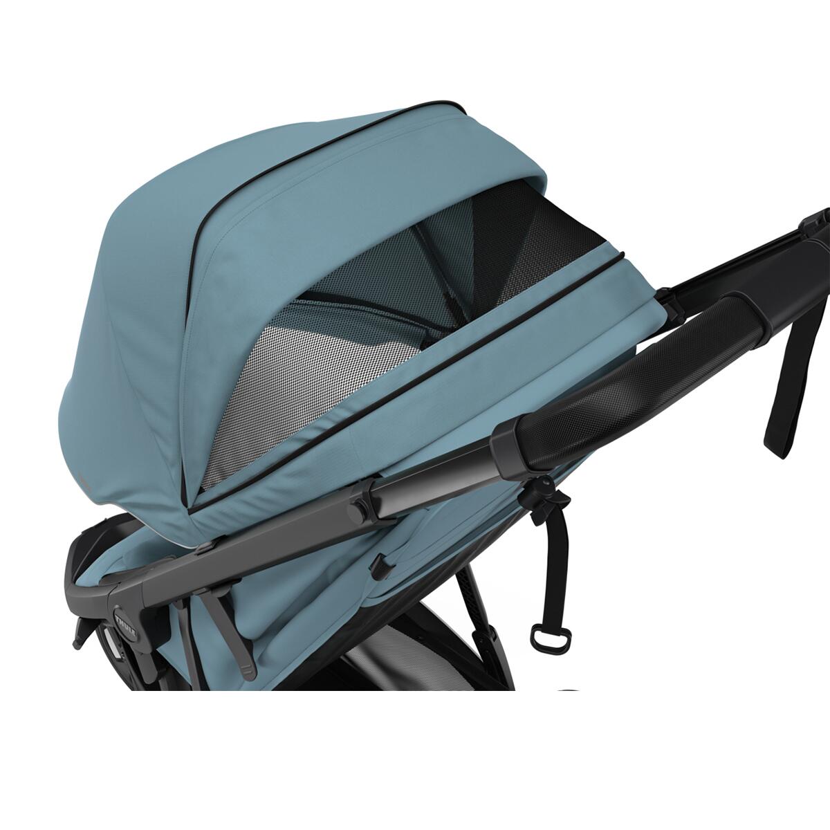 Copertina ajustabila, cu extensie integrata si plasa transparenta pentru ventilatie si functia peekaboo, ofera protectie impotriva soarelui puternic (UPF 50+) si asigura o plimbare placuta copilului pe orice tip de vreme.