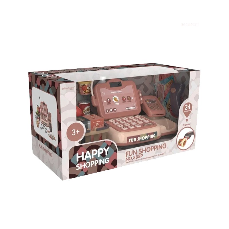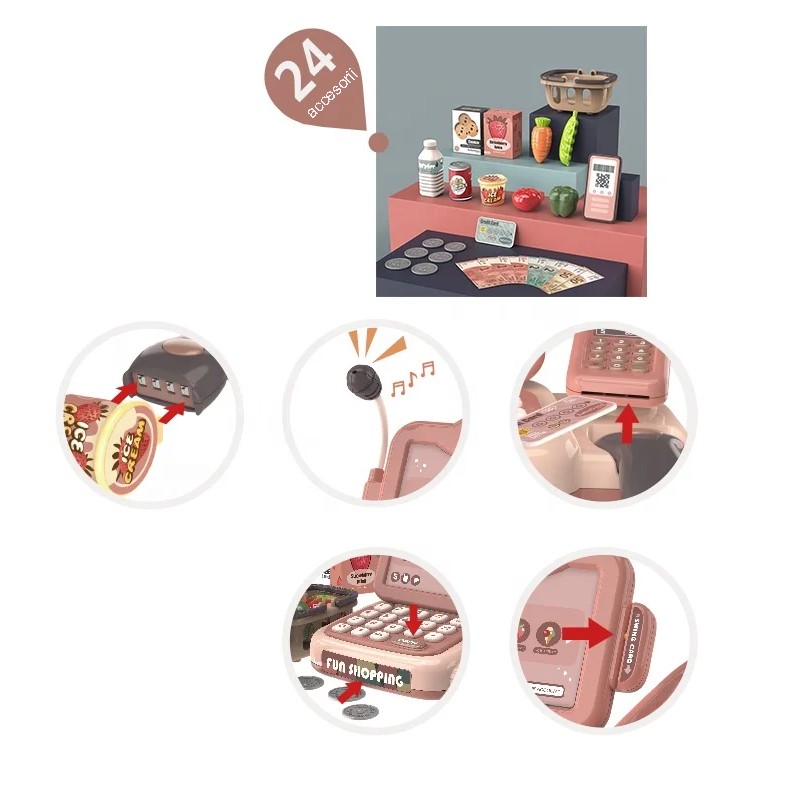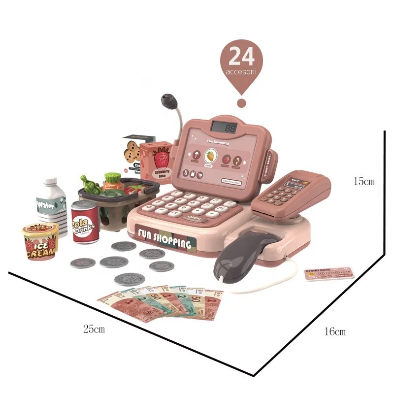Casă de marcat de jucărie cu scanner, microfon și 24 accesorii, 25x16x15 cm