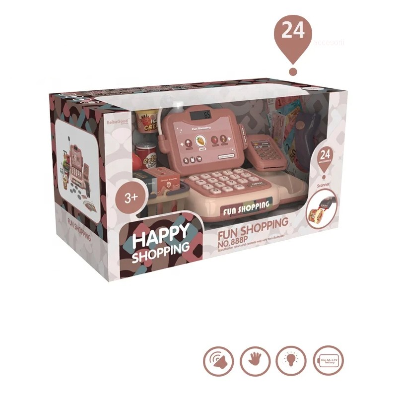 Transformă joaca în experiență de „magazin” cu această casă de marcat de jucărie complet echipată, ideală pentru jocuri de rol. Copiii pot scana produse, pot anunța oferte la microfon și pot face „plăți” cu bani și card, dezvoltând comunicarea, imaginația și înțelegerea noțiunilor de cumpărături.