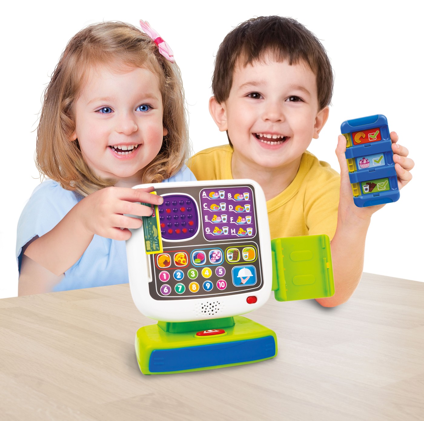 Cei mici pot simula scanarea produselor, introducerea prețurilor, plata cu cardul și gestionarea banilor, în timp ce își dezvoltă coordonarea, motricitatea fină și primele noțiuni despre cifre, litere și tranzacții.